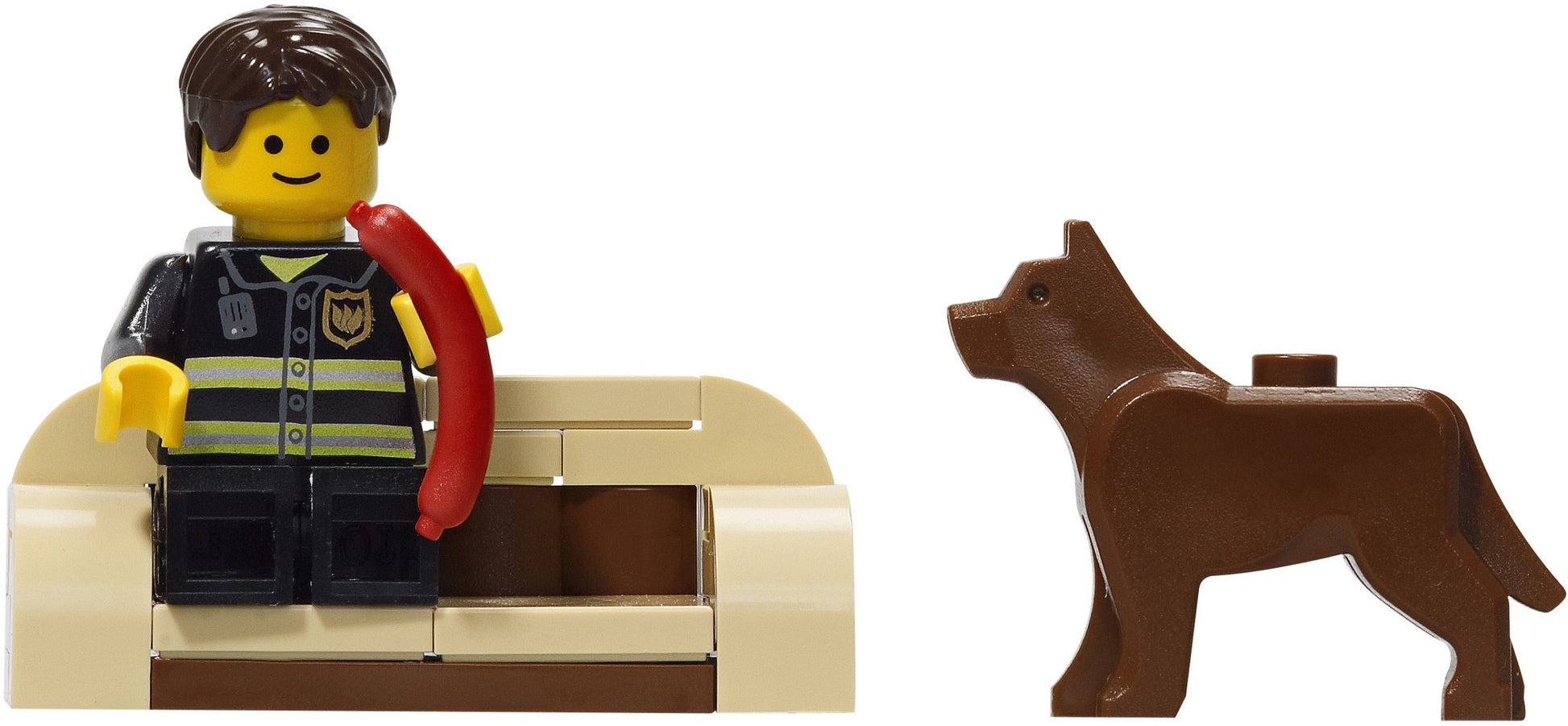 - Includes a 1930’s-style fire truck, 4 minifigures and a fire-dog!