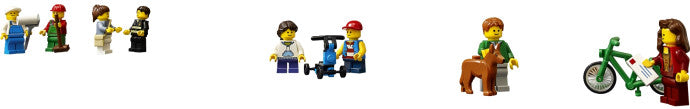 - Includes 4 minifigures with accessories: pet shop owner, girl on bicycle, painter with paint roller and woman!