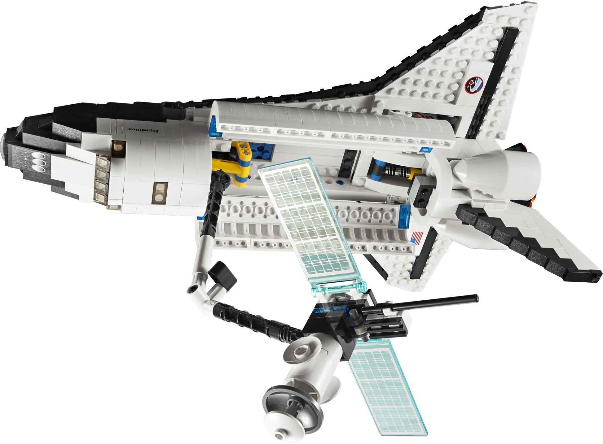 Standing 17.5" (44cm) tall and 10" (25.5cm) from wing tip to wing tip, this detailed and realistic space shuttle is ready to count down and blast off on its next exciting mission into space! You can take off from the launch pad, separate the detachable fuel tank and booster rockets, and deploy the satellite with unfolding antenna and solar cell panels. Shuttle model features realistic engines, retractable landing gear, an opening cockpit with seats for 2 astronauts, opening cargo compartment with a crane that can hold the satellite and a ground maintenance vehicle. Includes 3 minifigures: 1 male and 1 female astronaut, as well as 1 service crew member.