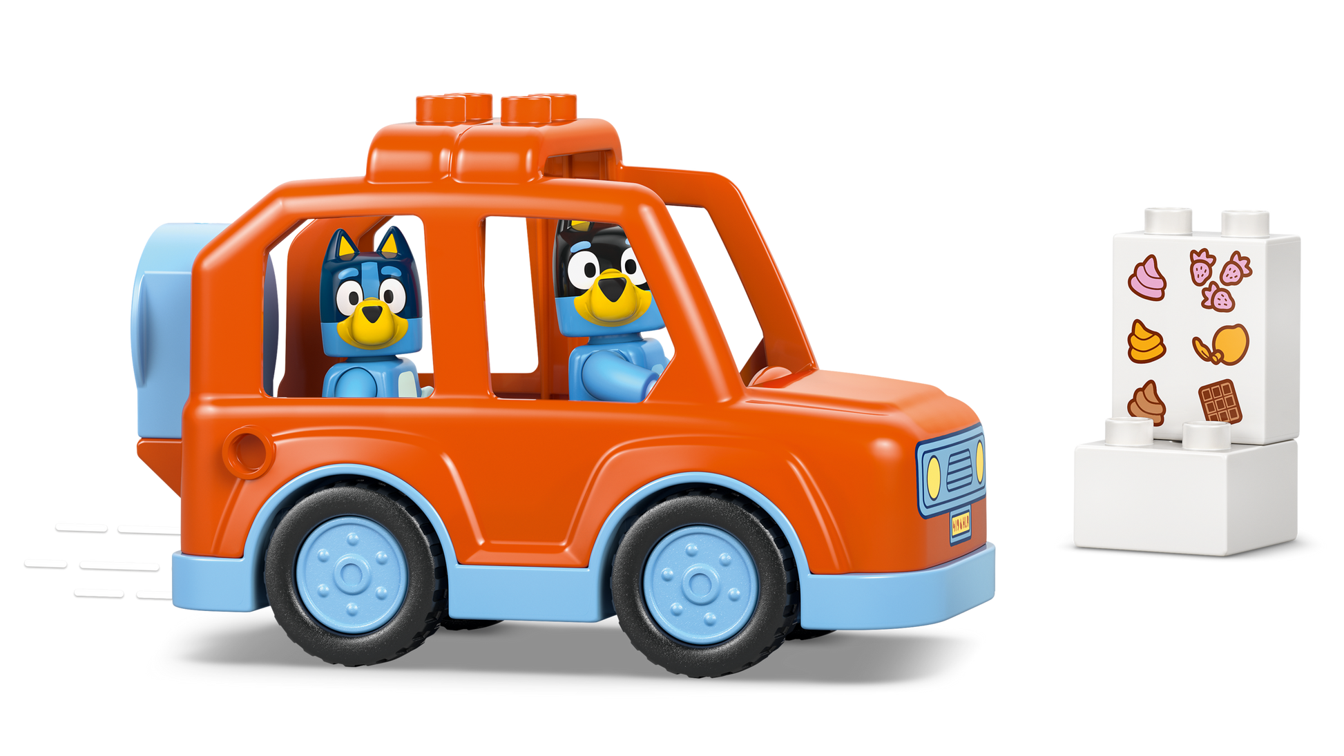- Ice cream stand and vehicle playset inspired by the Bluey TV show – Transport preschoolers to the fun world of the Heeler family with the LEGO® DUPLO® Bluey Ice Cream Trip with Bluey toddler toy