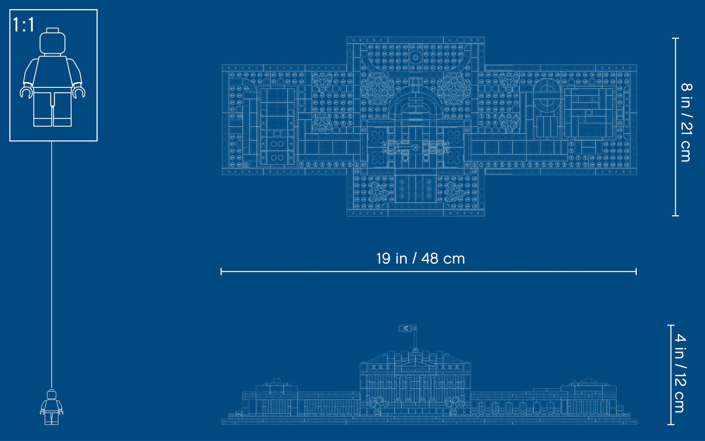 - Measuring 4” (11cm) high, 18” (47cm) wide and 7” (20cm) deep, this buildable LEGO® Architecture model is a super display item for your home or office. It's also makes the best gift for creative friends.