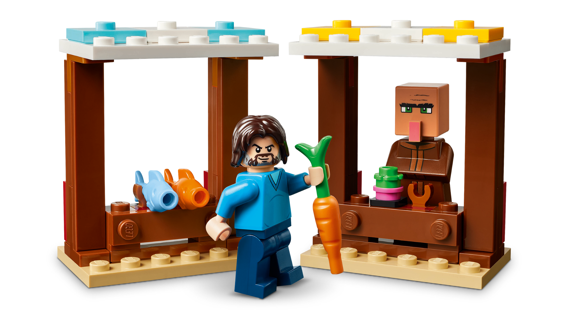 - Video game LEGO® set – When piglins launch missiles from their ghast balloon, causing the fountain to ‘explode’, kids must defend the villagers and Steve's fried chicken restaurant and crafting shack