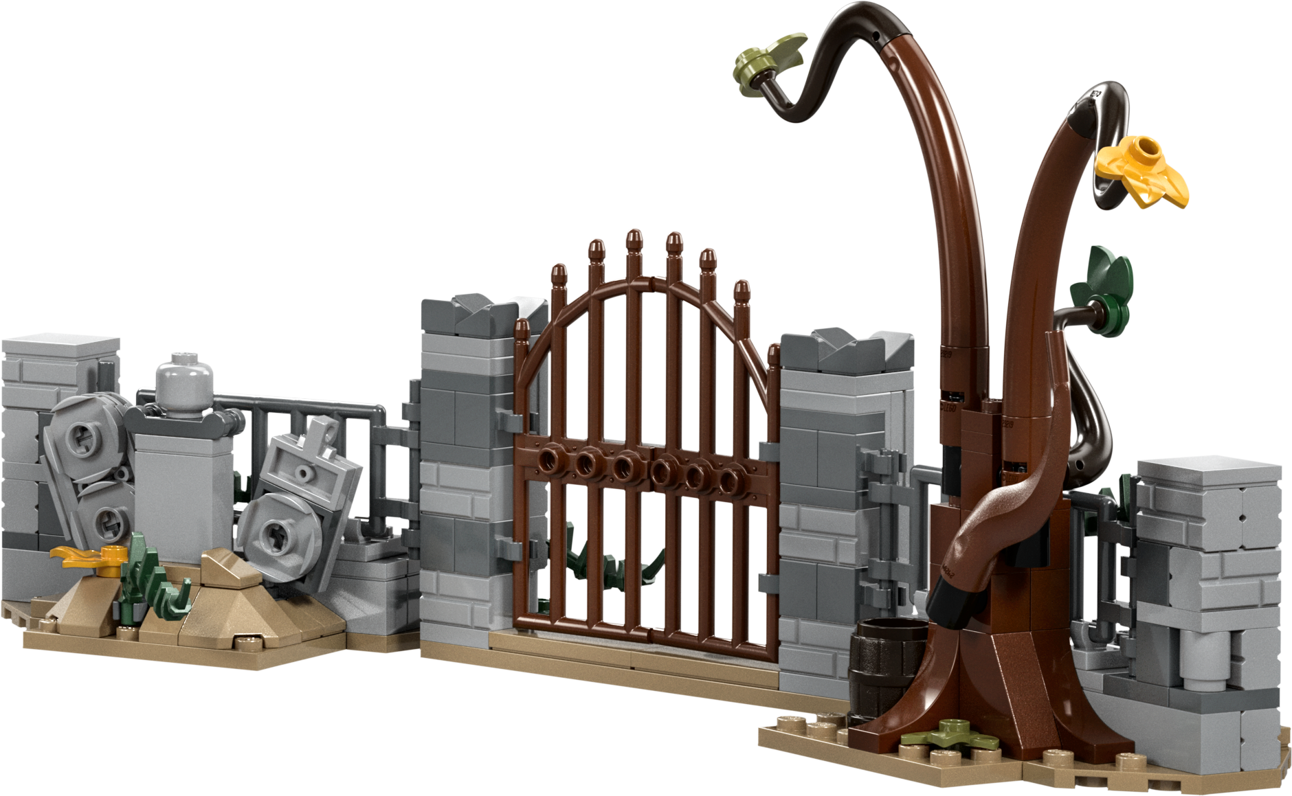 - Build, display and play – The cottage measures over 27 cm (10.5 in.) high, 26 cm (10 in.) wide and 24 cm (9 in.) deep. The gate/graveyard build can be used as a display stand for all the included characters