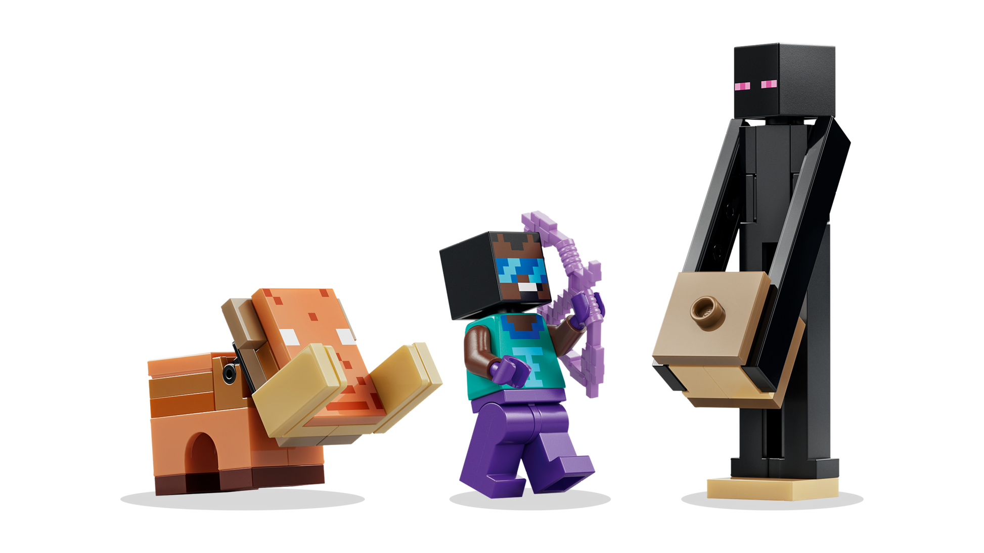 - 3 CHARACTERS, 2 PORTALS – Activate the toy’s portals and pass through to find a LEGO® build from each biome and Minecraft® action with a Cool Hero minifigure, plus Enderman and a baby hoglin figures