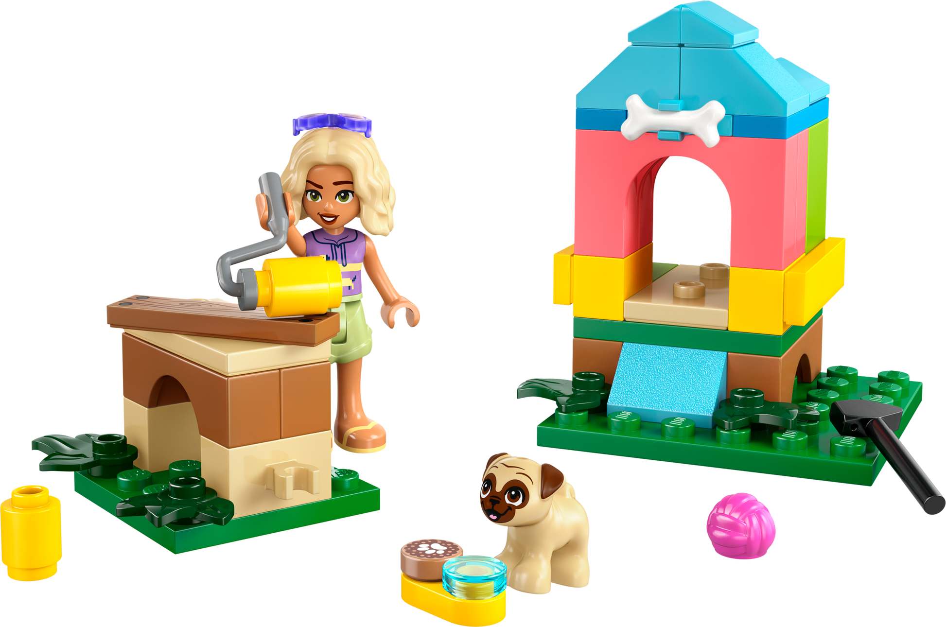 With this fun little build, kids aged 5 and up help Nova build a doghouse for Dango. The workbench comes with all the tools Nova needs to create the cozy house.