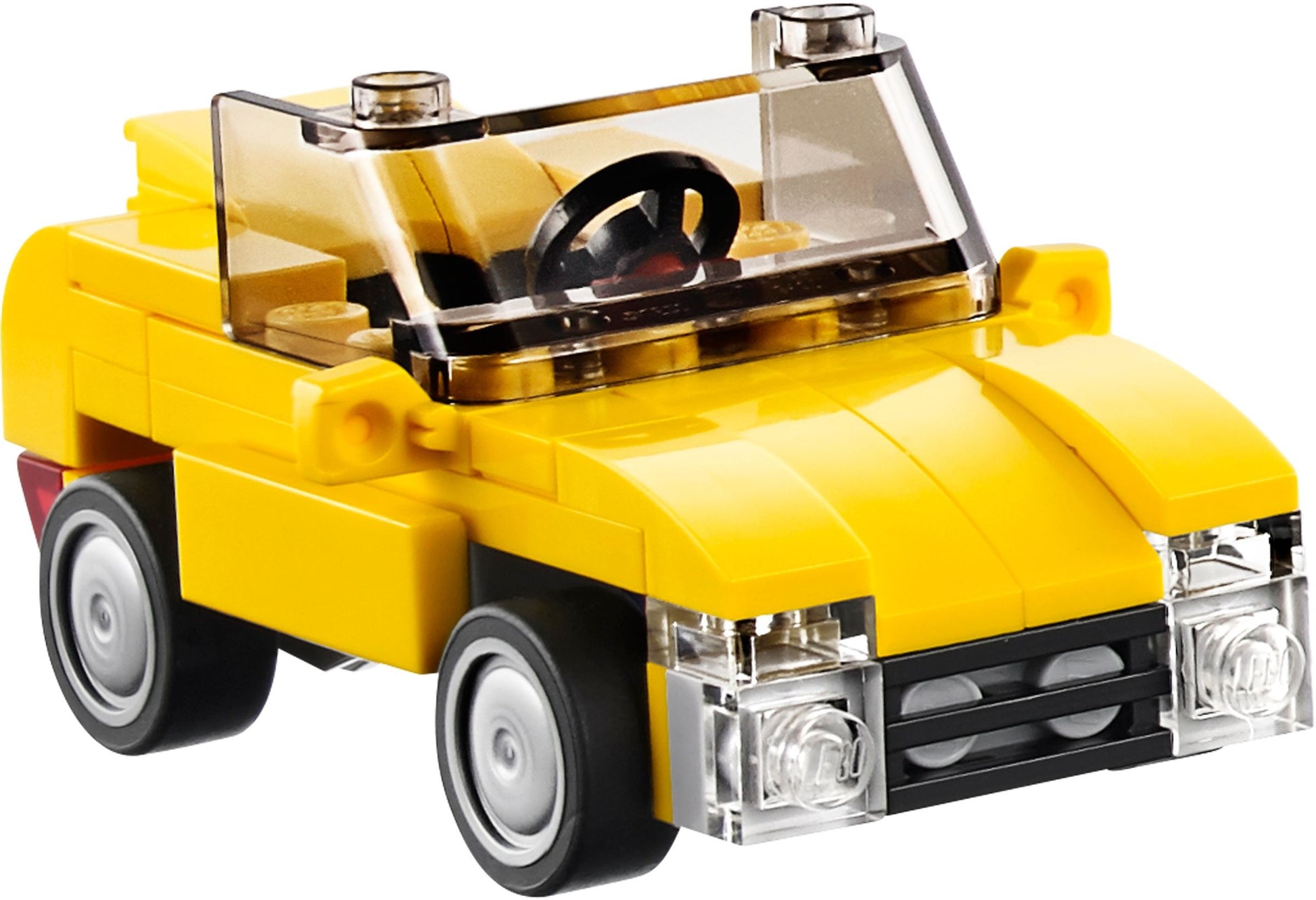 Open a world of adventures with this exciting 3-in-1 Bike Shop & Café. Serve delicious muffins and espresso coffee to your customers at the cozy café. Then visit the neighboring bike shop, buy the cool red bike that's for sale, mount it on your car rack and head for the hills! Fold out the Bike Shop & Café for your very own main street, where you can add your own LEGO® creations! What kind of shop will you build next? You can also rebuild the set to create an auto repair shop or a flower shop. Includes 3 minifigures: 2 men and a woman.