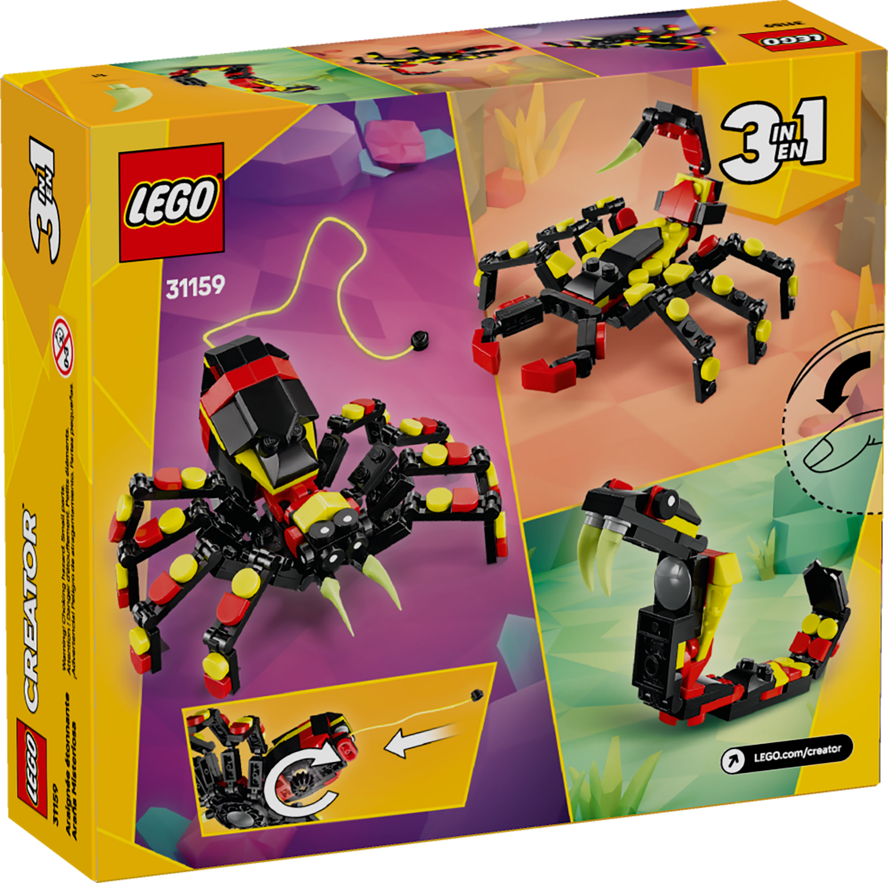 - 3 wild animals in 1 box – The LEGO® Creator Wild Animals: Surprising Spider toy lets kids aged 7 and up build and rebuild 3 different animal figures with the same bricks