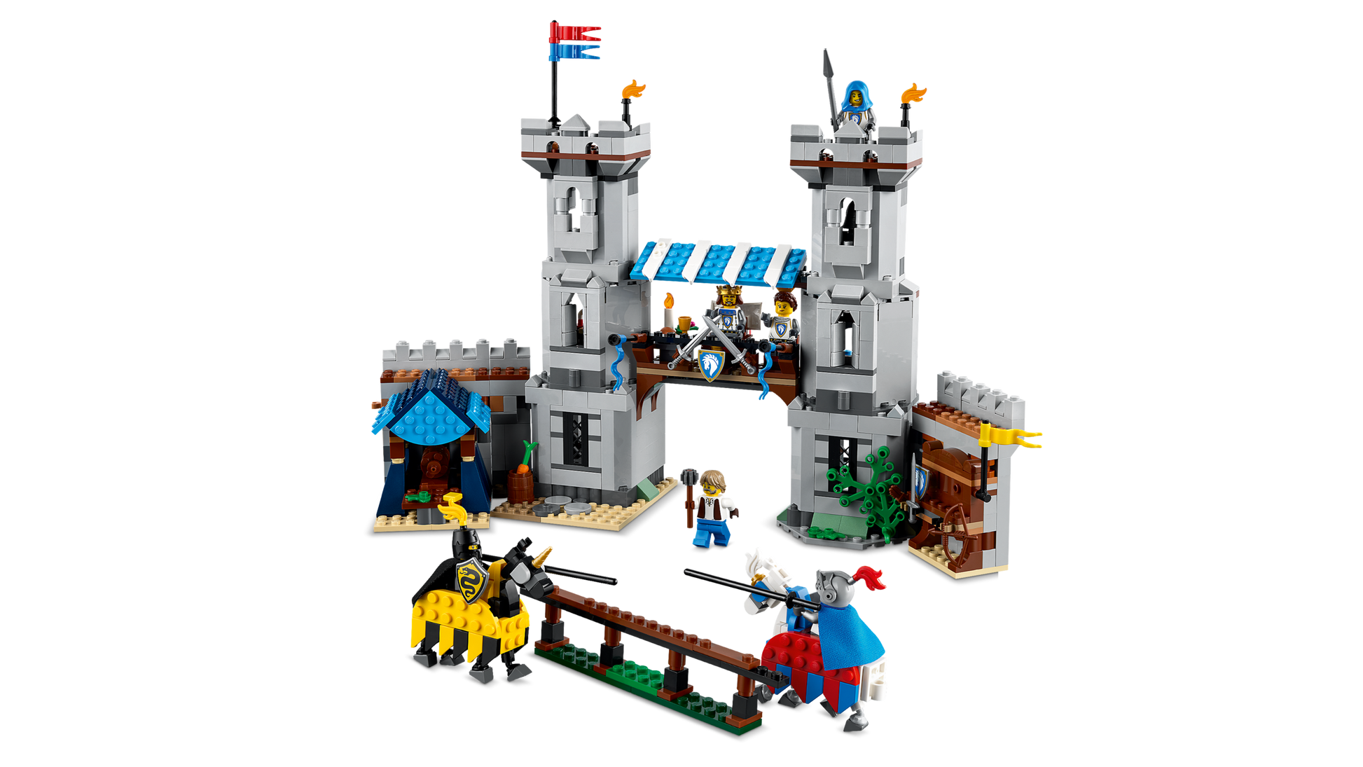 Boys and girls aged 9 and up have the choice of 3 different building options: an interactive castle playset, a jousting set with a small castle or a medieval town playset with a windmill. Each playset comes with 6 minifigures: a horse knight king, horse knight champion, horse knight archer, horse knight spearman, blacksmith and serpent knight, plus 2 posable horses.