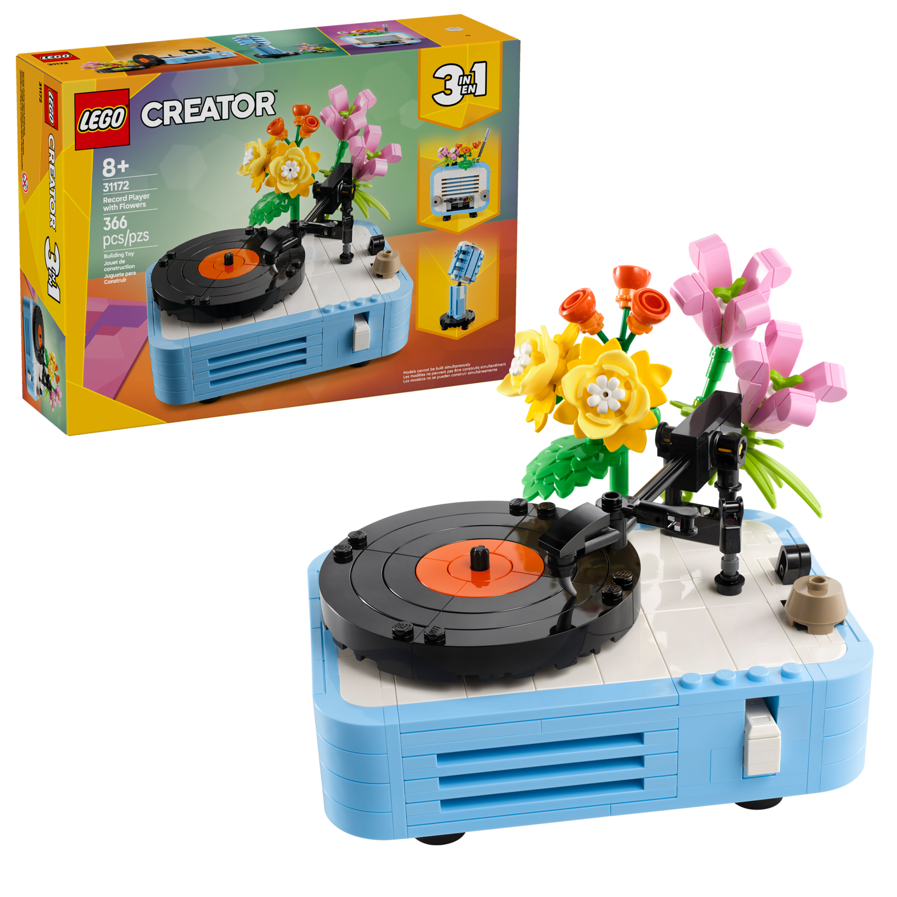 - 3 LEGO® music set building options in 1 box – The LEGO Creator 3in1 Record Player with Flowers toy playset lets kids aged 8 and up build and rebuild 3 different retro-style models with the same bricks