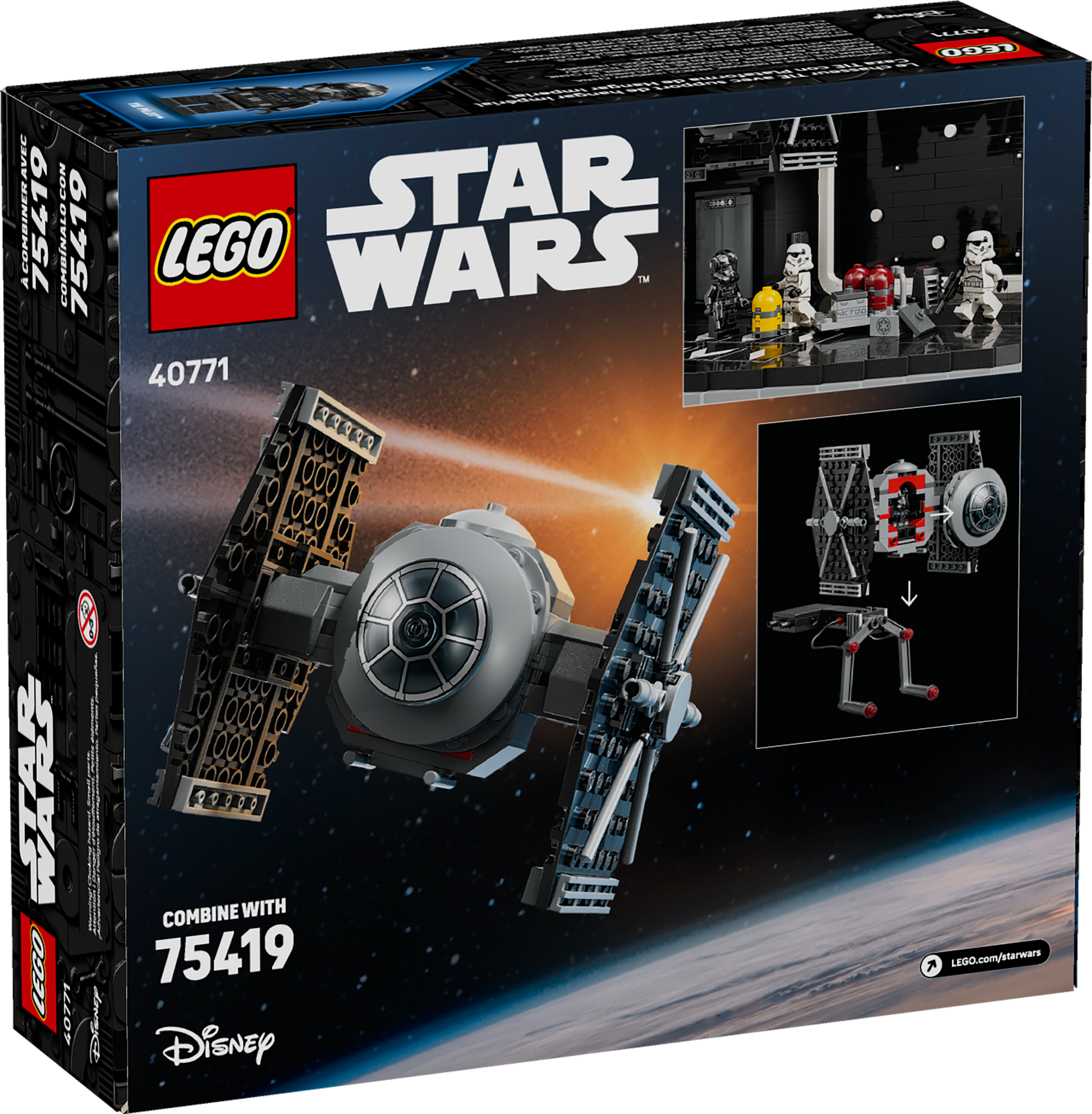 Recreate an iconic TIE Fighter and dock it on an Imperial hangar rack with this LEGO® Star Wars™ model building kit (40771) for ages 10 and up. A super LEGO Star Wars gift with purchase of the Death Star (75419), this building set features a TIE Fighter and rack that connects to the Death Star’s hangar wall. There are also 3 LEGO Star Wars minifigures, including 2 Stormtroopers, plus a service cart to add to your Death Star Ultimate Collector Series buildable model. Set contains 236 pieces.