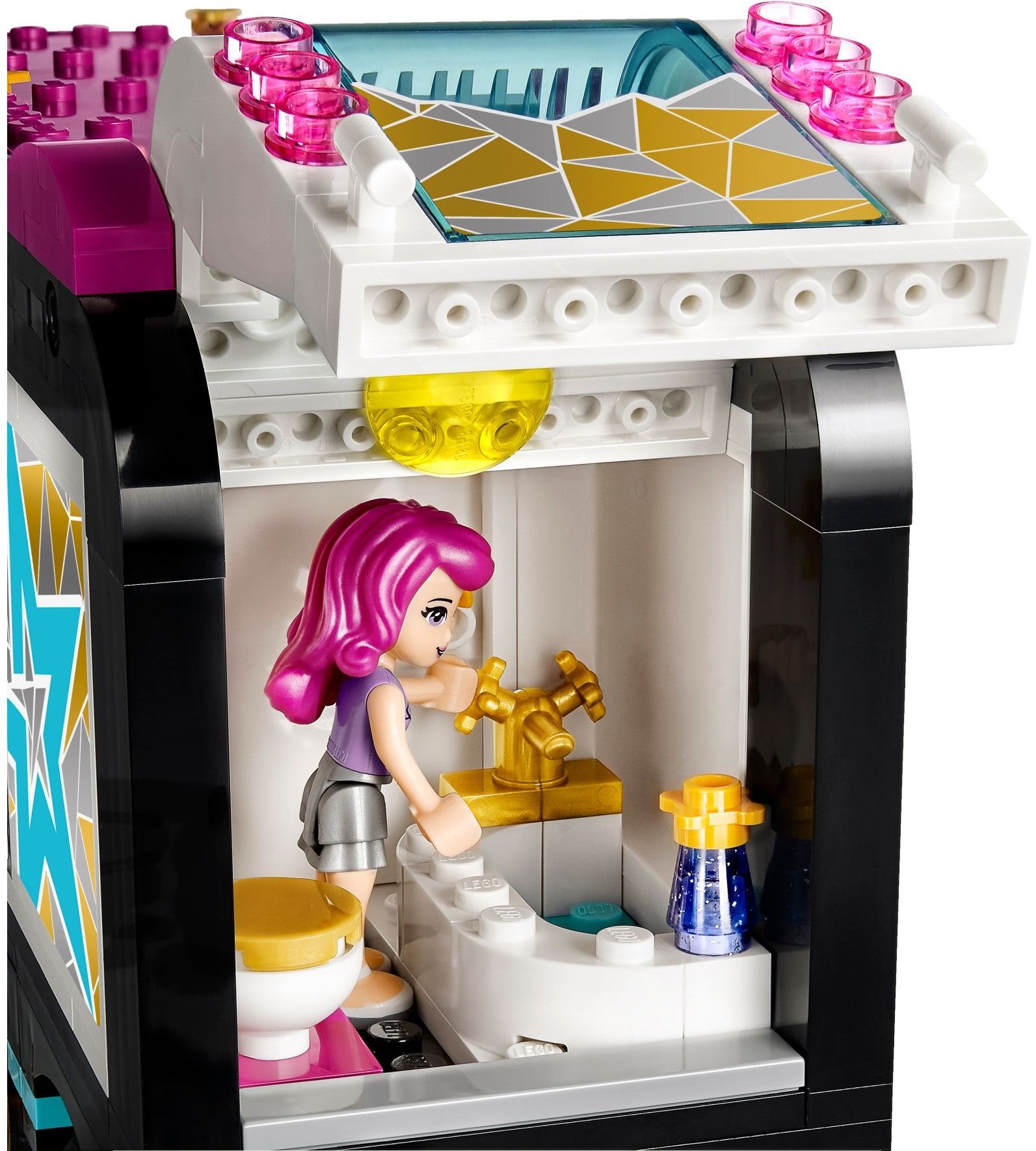 Drive with Livi the pop star on her amazing Tour Bus! The Tour Bus is a home away from home for Livi when she is on the road, and has everything a pop star needs to relax and prepare for performances. Chill out in the living area and help Livi go through her fan mail before having fun singing karaoke on the TV with her friends Stephanie and Mia. Stop the bus and reveal the rehearsal stage area for Livi to practice for tonight’s show, while her friends watch from their sun loungers under the umbrella with some drinks and snacks. Pump some tunes from the DJ decks as Livi joins them after rehearsal to get in the party mood. Then relax in the hot tub before Stephanie takes the wheel and drives Livi to the venue in time for the big show! Includes 3 mini-doll figures: Livi the pop star, Stephanie and Mia.