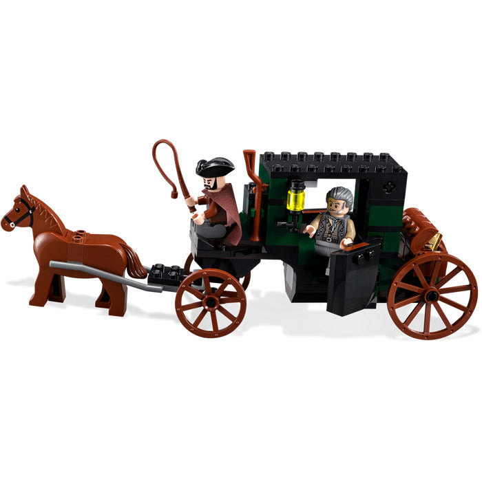 - Includes 5 minifigures: Jack Sparrow, Joshamee Gibbs, horse coach driver and 2 King George soldiers