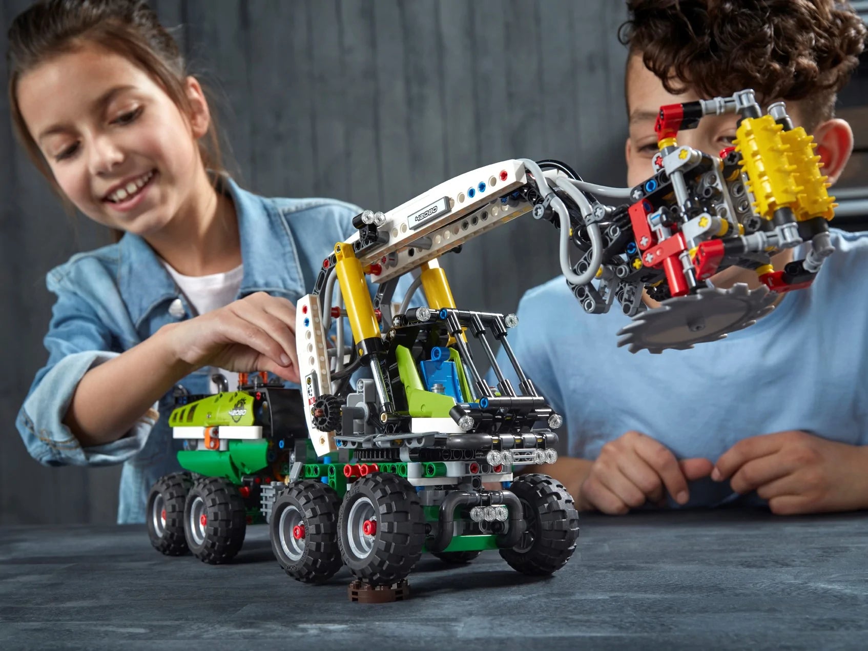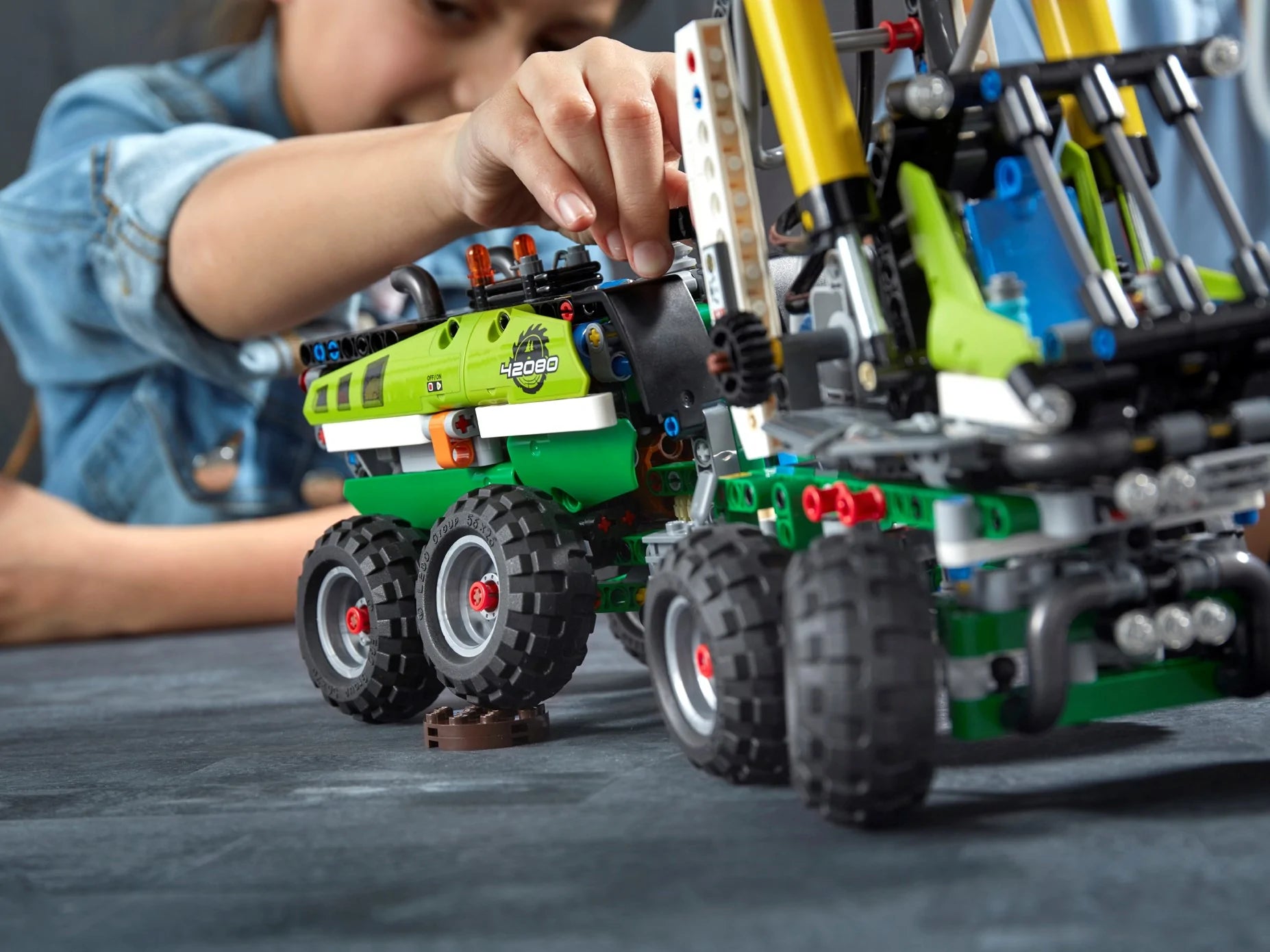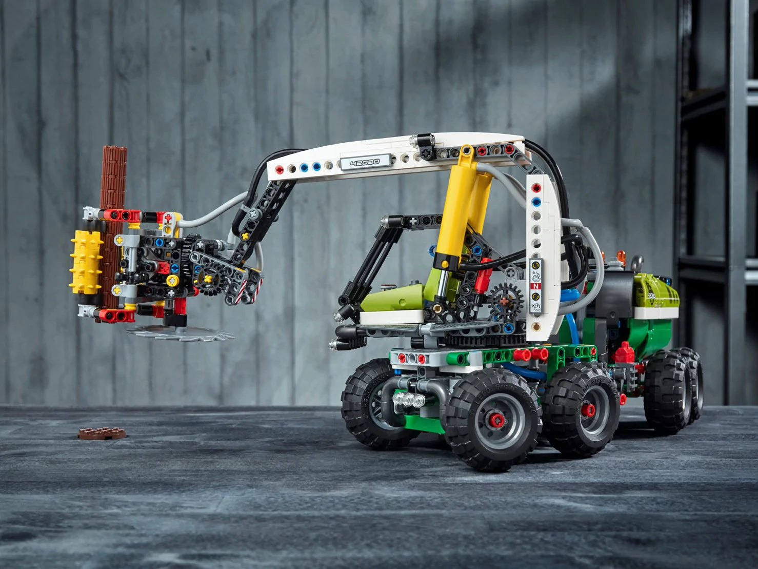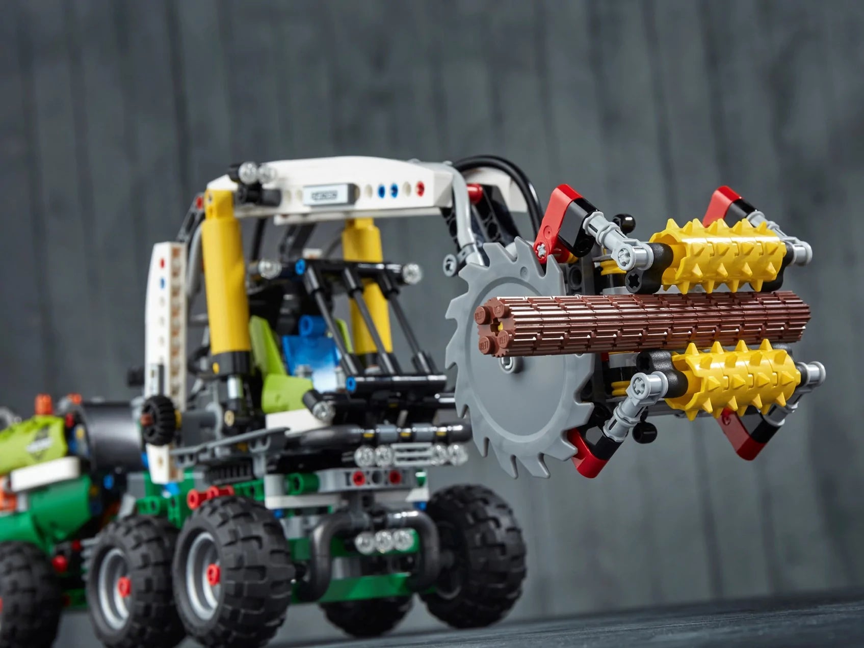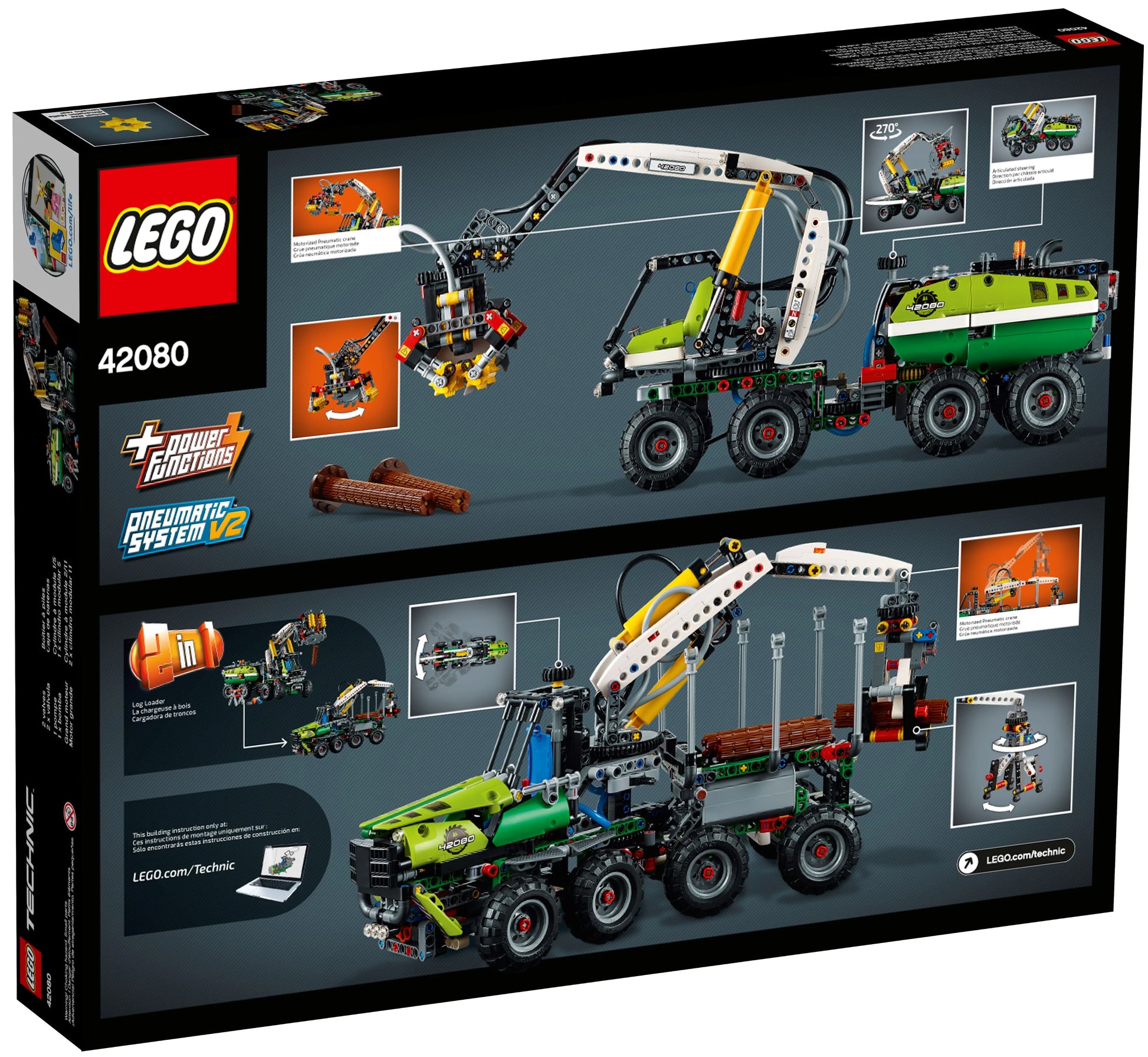 Enjoy a rewarding build and play experience with the LEGO® Technic™ 42080 Forest Machine. This detailed replica of a real-life forest harvester comes with lots of realistic features, including working suspension, articulated steering and a multidirectional harvester head with a spinnable cutter blade. Activate the included LEGO Power Functions motor and engage the advanced pneumatic system to operate the motorized boom and grabber. You can also rotate the driver's cab to move the boom through more than 180°. This 2-in-1 advanced building set comes with 2 buildable tree trunks and rebuilds into a rugged Log Loader.
