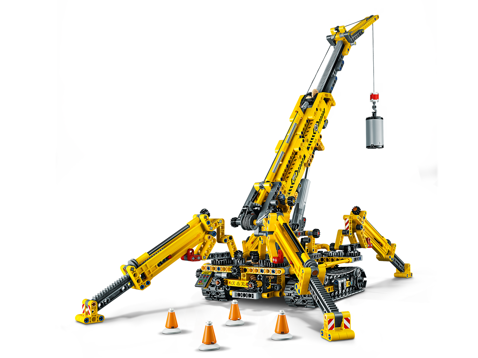 • Compact Crawler Crane, with boom and legs extended, measures over 20" (51 cm) high, 19" (49 cm) long and 15" (40 cm) wide.