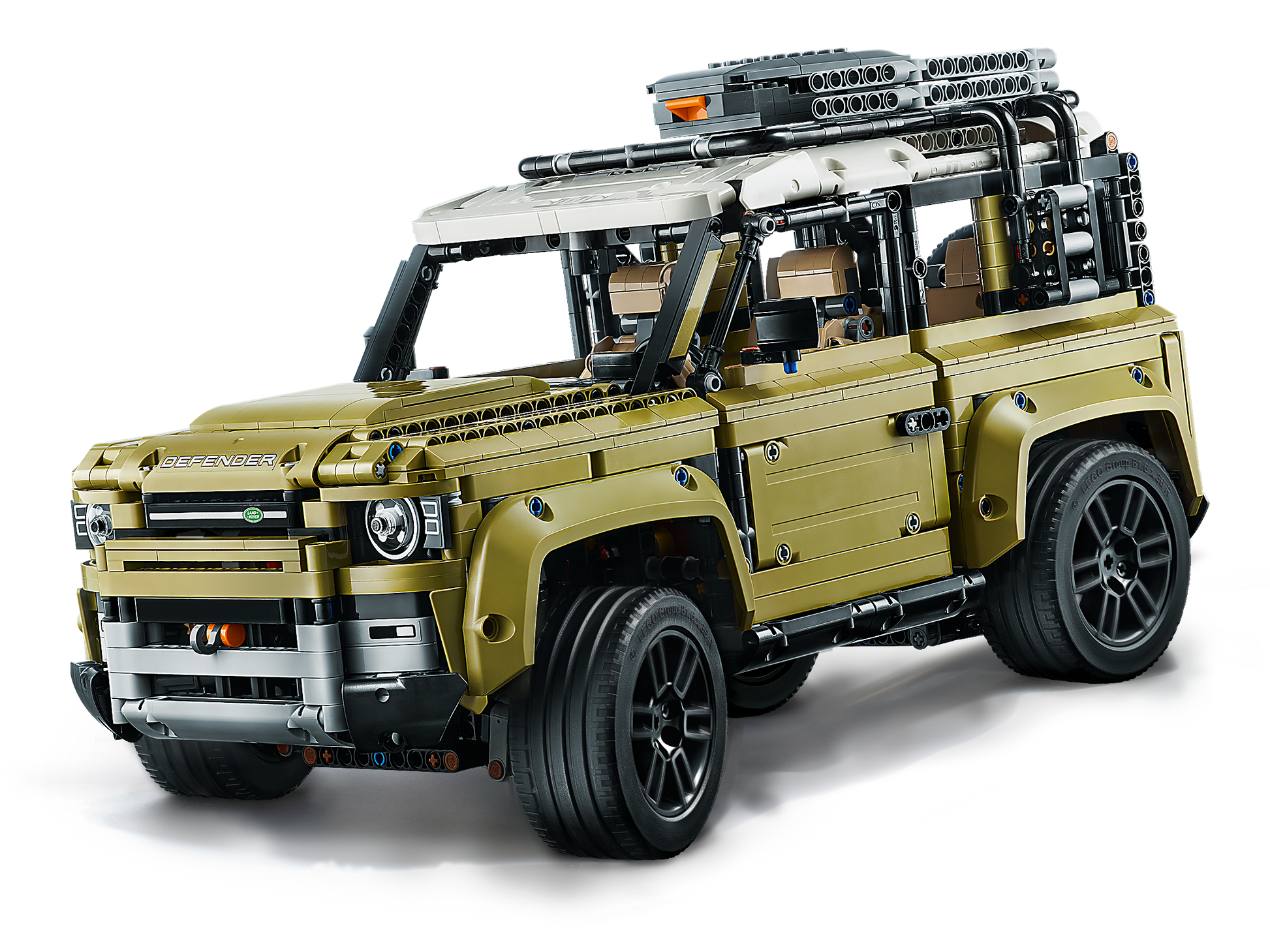 Experience world-leading vehicle design firsthand with this highly authentic and displayable 42110 LEGO® Technic™ Land Rover Defender model. Developed in partnership with Land Rover, this impressive LEGO replica captures the vehicle’s outstanding level of refinement with its clean, modern lines and sculpted surfaces, and comes with original-design rims with ground-gripping tires, plus a host of realistic features and functions. Opening doors allow access to an elaborate cabin with a working steering wheel, detailed dashboard and a new-for-October-2019 transmission system with 2 levers for engaging high or low gear ratios and a selector for changing gear – the most sophisticated LEGO Technic gearbox to date! The interior also features forward-folding rear seats that give visual access to the 4-speed sequential gearbox. And, the attention to detail doesn't end there. This awesome replica model also has an in-line 6-cylinder engine with moving pistons beneath the bonnet, working All Wheel Drive with 3 differentials, independent suspension on both axles and a working winch! You can even open the tail door with a turn of the rear-mounted spare wheel. Finished with a removable roof rack with storage box, pannier, ladder and traction mats, this impressive interpretation of the quintessential all-terrain vehicle has been designed to provide a truly immersive and rewarding building experience. The perfect gift for Land Rover enthusiasts and fans of classic collectible model cars.