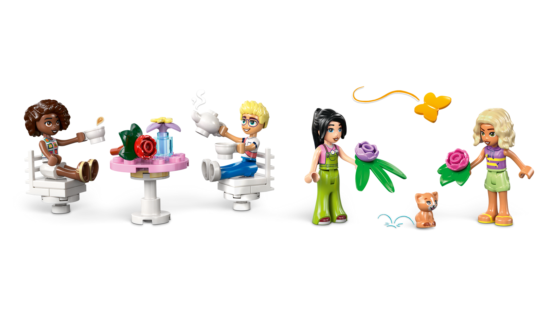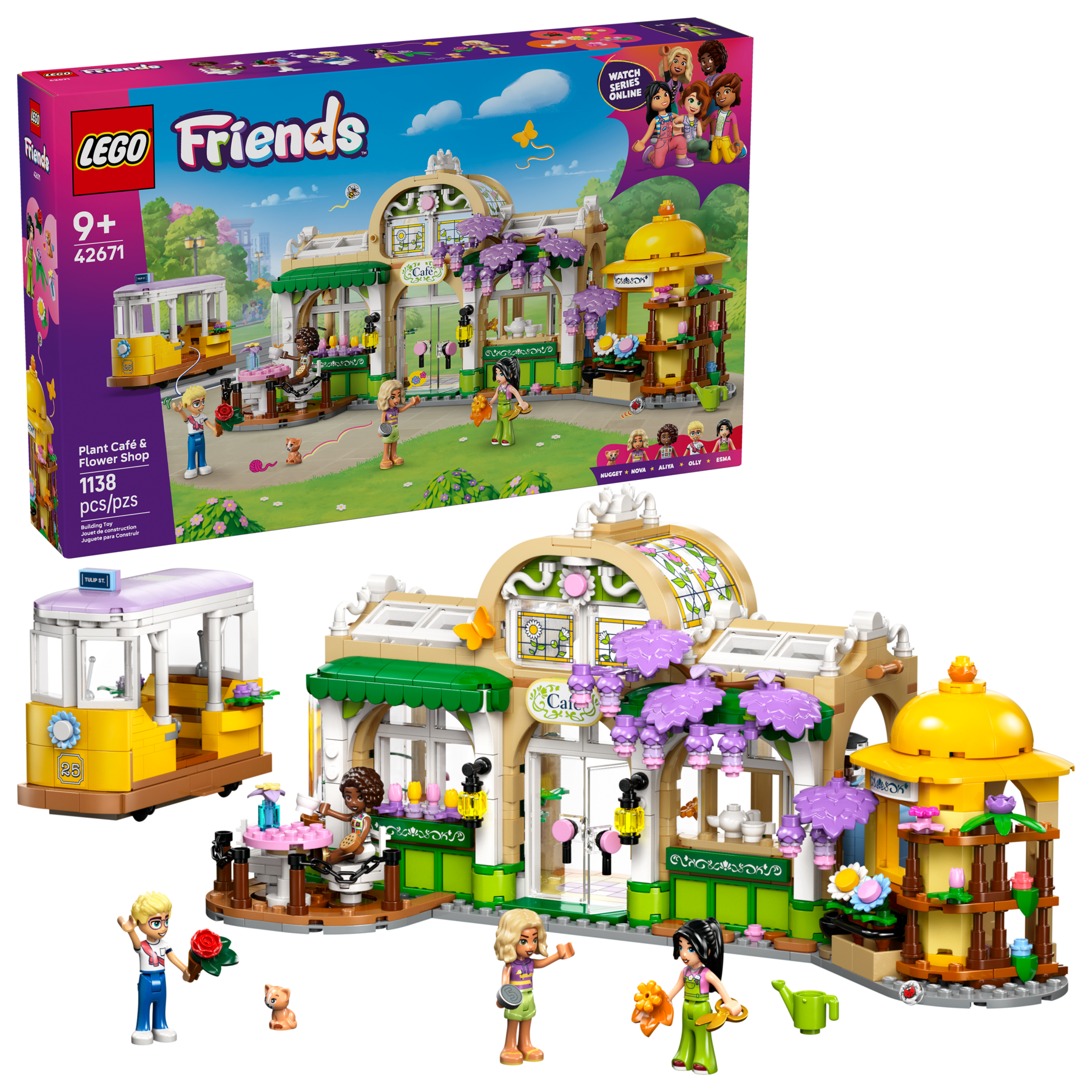 - A building kit blooming with friendship – Let kids’ imaginations grow with the LEGO® Friends Plant Café & Flower Shop for girls and boys, with a flower-shop-and-café scene and a streetcar toy