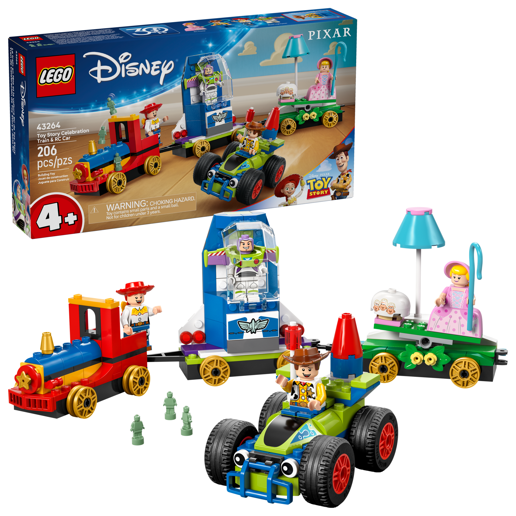 - What’s inside? – The buildable toy LEGO® | Disney set includes a train engine, 2 floats and a car, plus 4 LEGO | Disney minifigure character: Woody, Jessie, Bo Peep and Buzz Lightyear