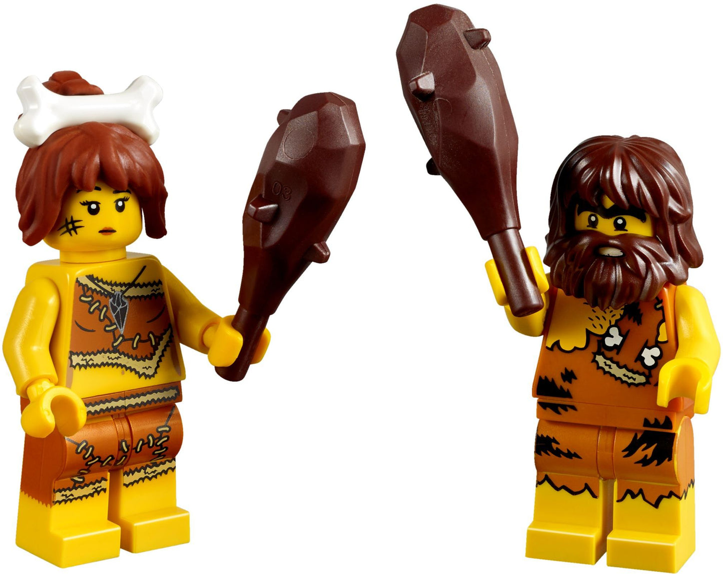 Enjoy some prehistoric LEGO® fun with these cool caveman and cavewoman minifigures with clubs and a cardboard cave house that doubles as a handy storage box.