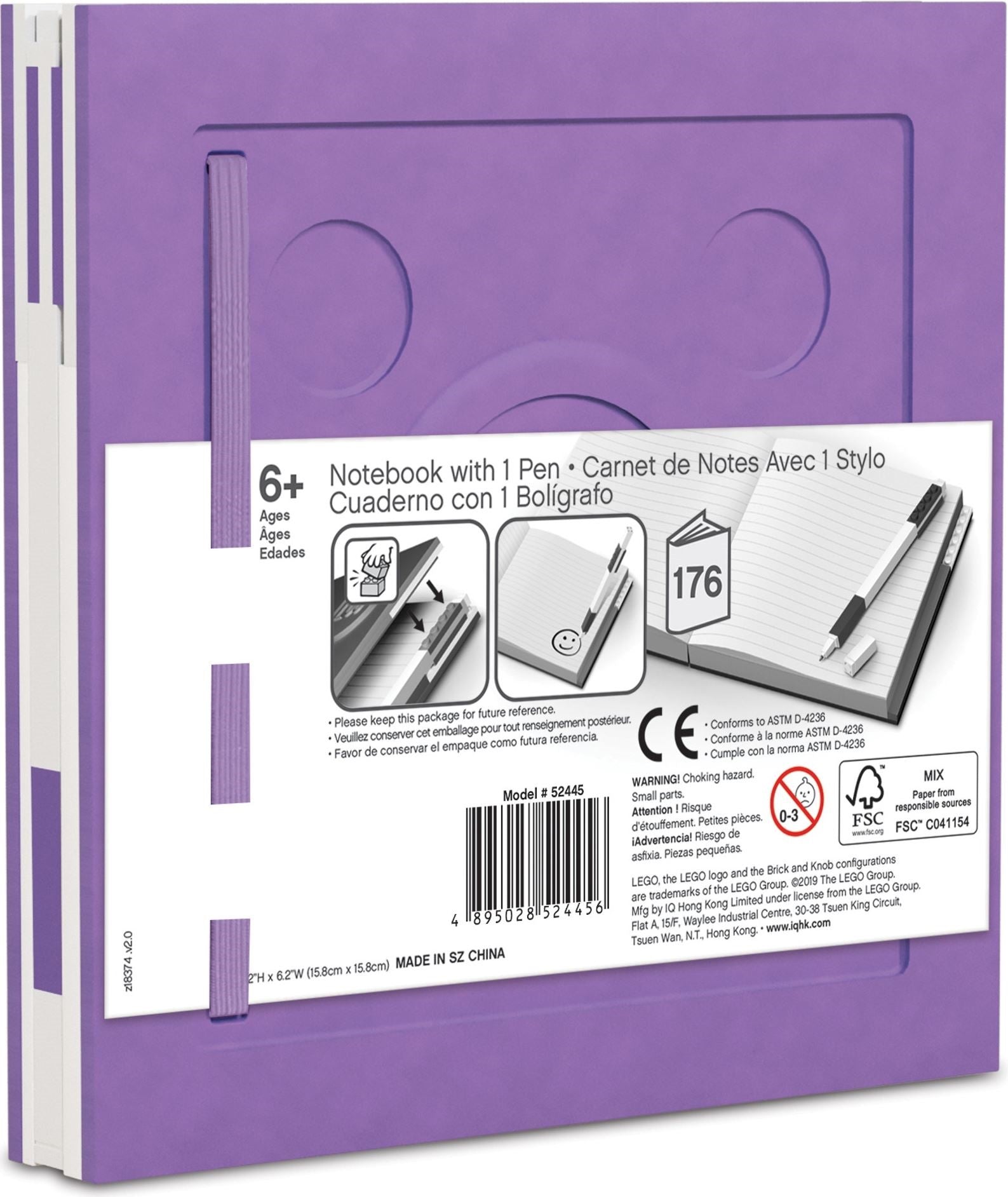 - LEGO® Notebook with Gel Pen – A 352-page ruled notebook, available in assorted colors, with embossed LEGO stud detailing and a 7 mm medium-point LEGO gel pen
