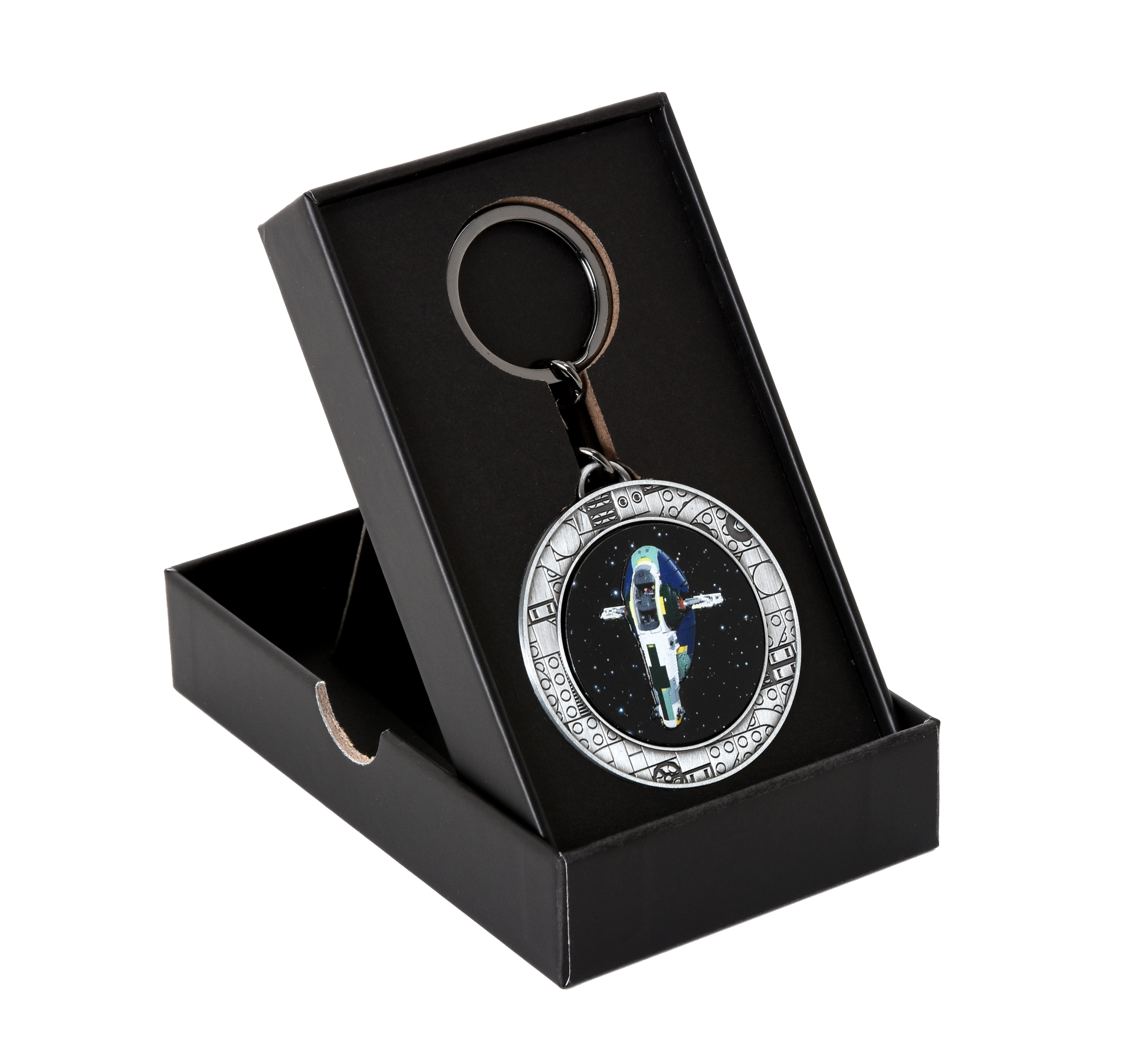 - Fun Star Wars™ accessory for fans – This key chain features a switch at the back of the pendant to make the emblem of Jango Fett’s starship rotate, mimicking its iconic takeoff and landing movement