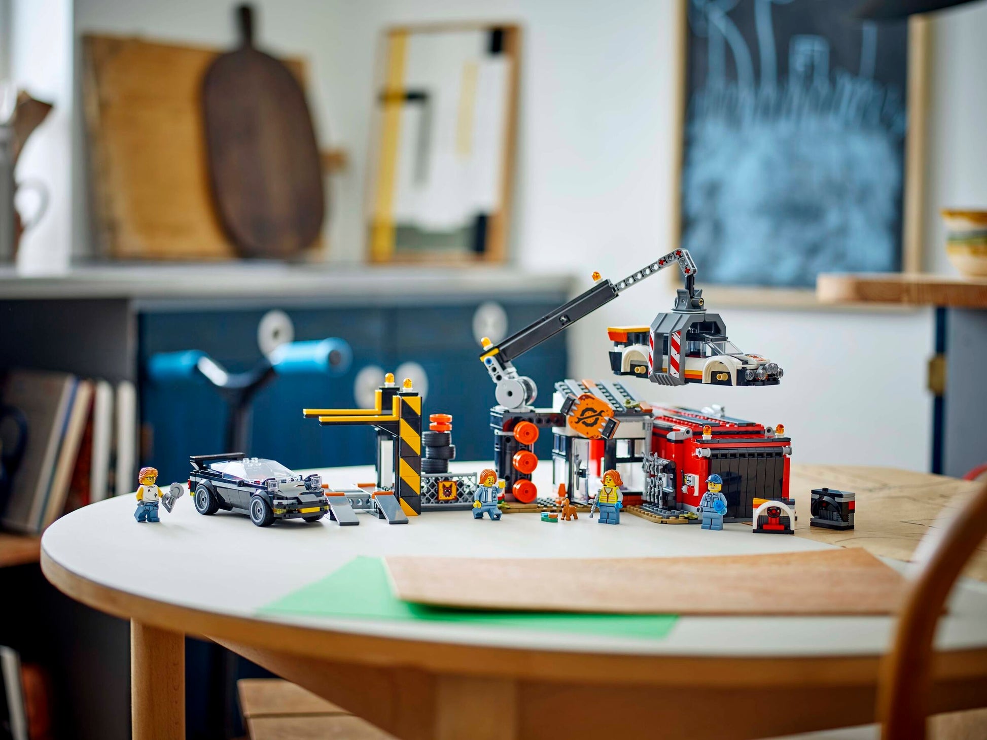 - What’s in the box? – This LEGO® junkyard toy includes everything kids need to build a toy scrapyard with a claw crane, crusher, office building, 2 cars and 4 worker minifigures