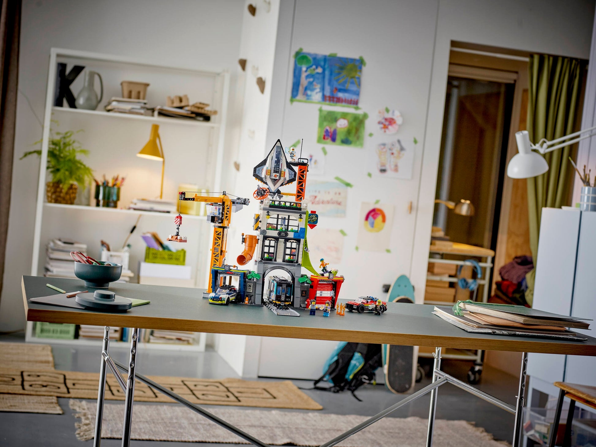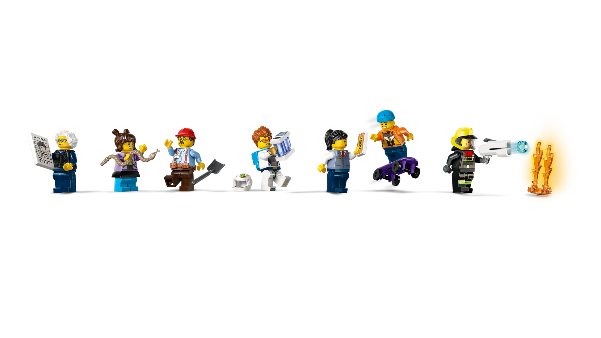- What’s in the box? – Models include the city tower, a toy crane, metro train, spaceship and police and fire vehicles, plus 7 minifigures, including 5 characters from the LEGO® City No Limits TV show