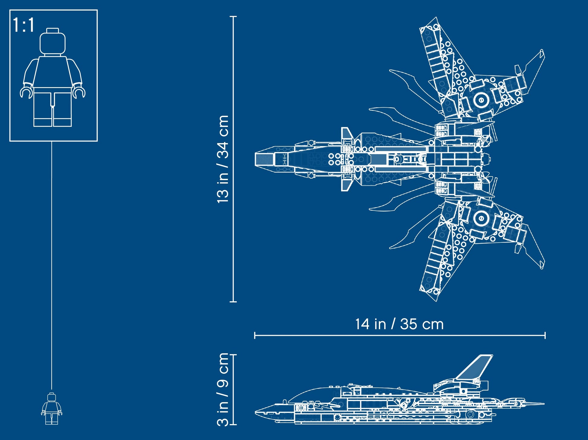 - Jay's Storm Fighter jet action toy measures over 3” (8cm) high, 11” (28cm) long and 11” (30cm) wide.