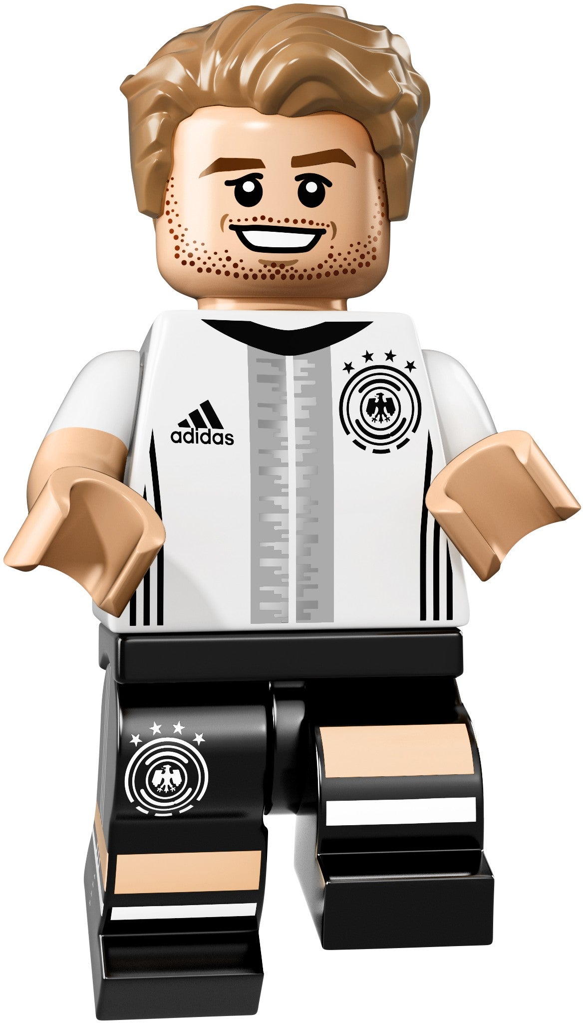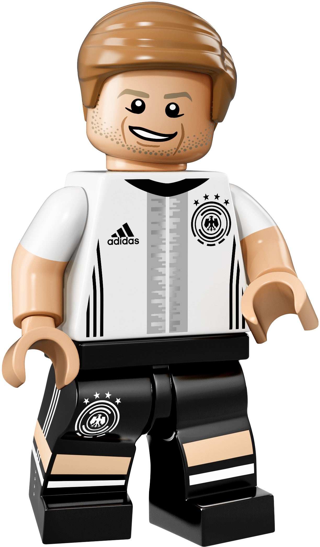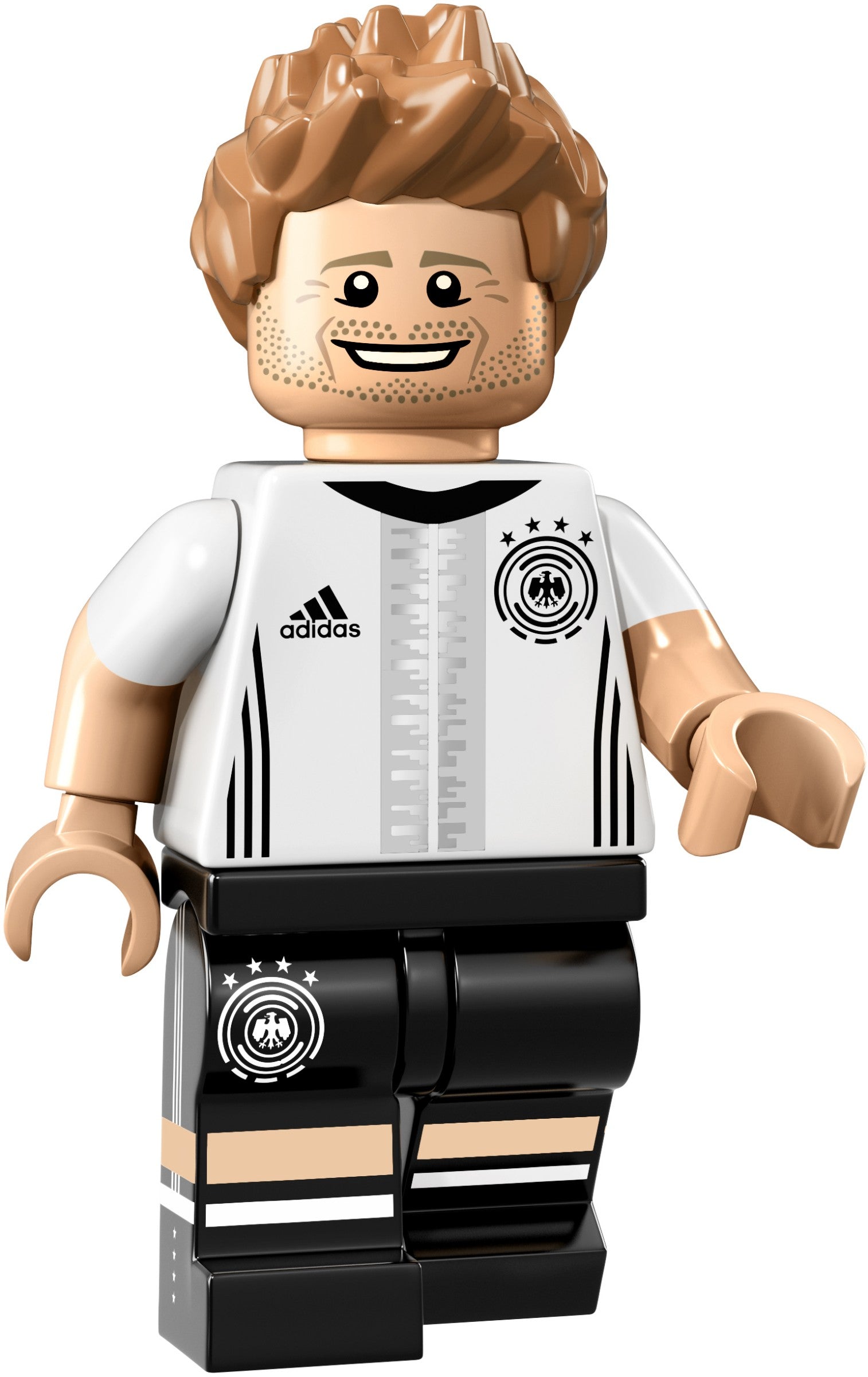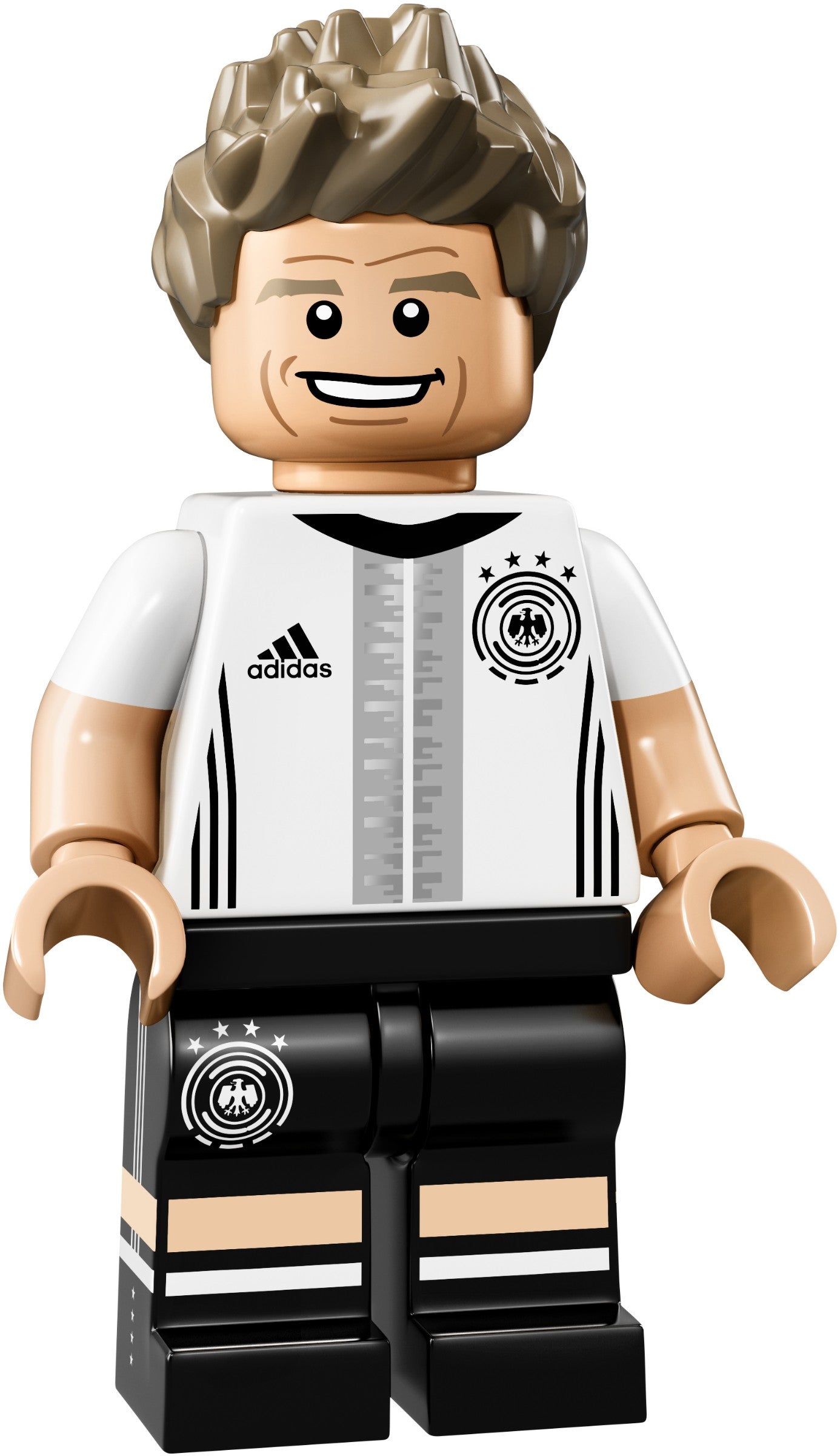 - Each minifigure in this series is dressed with the official adidas DFB soccer uniform bearing the player's name and number, plus a ball, display plate and collector's leaflet.