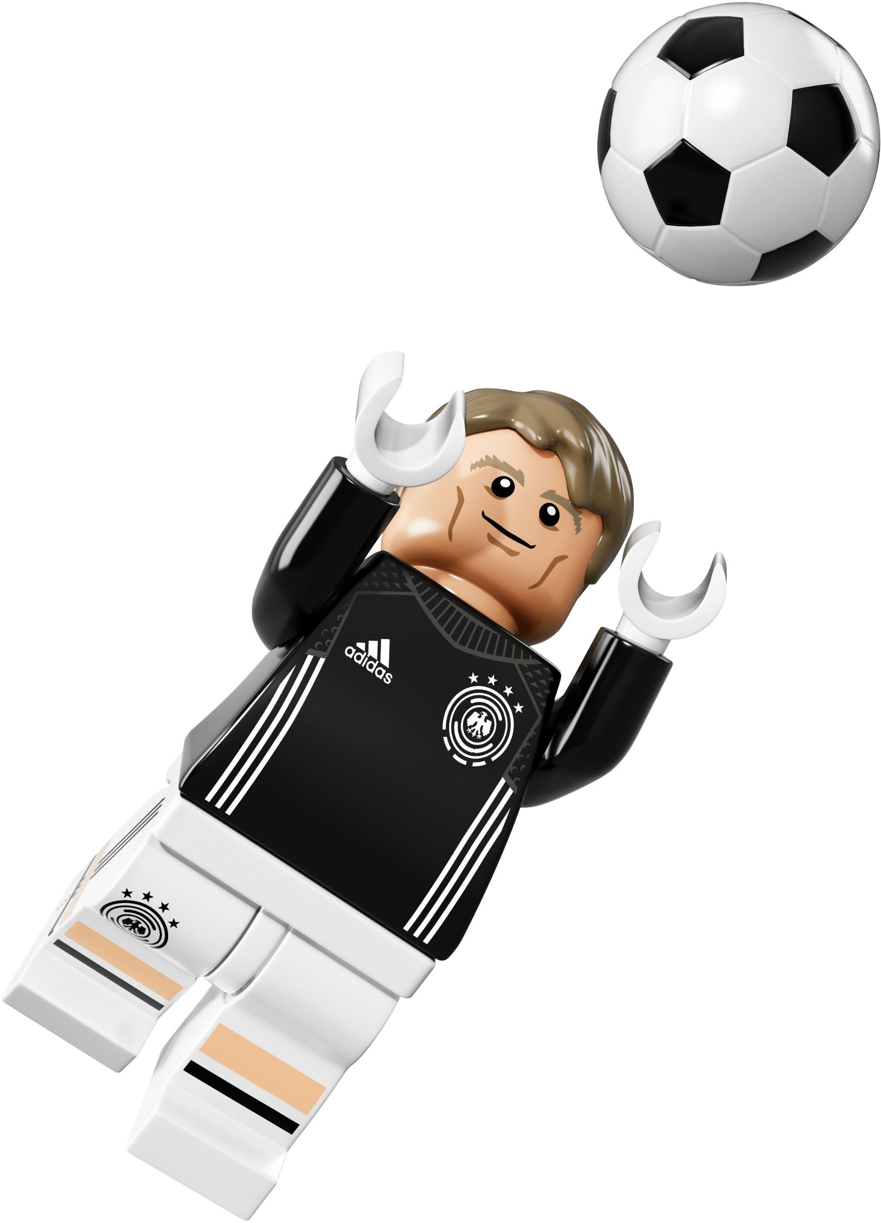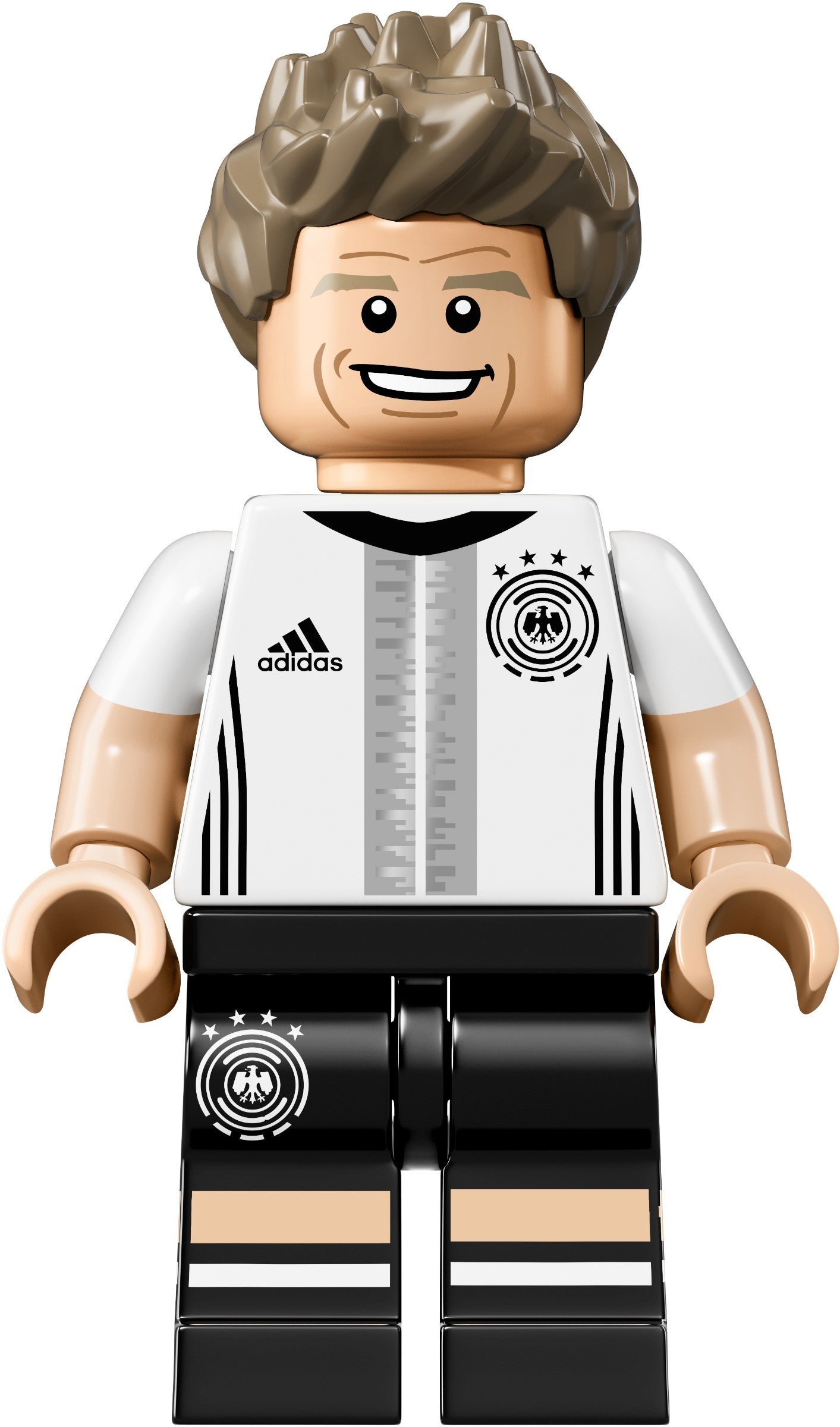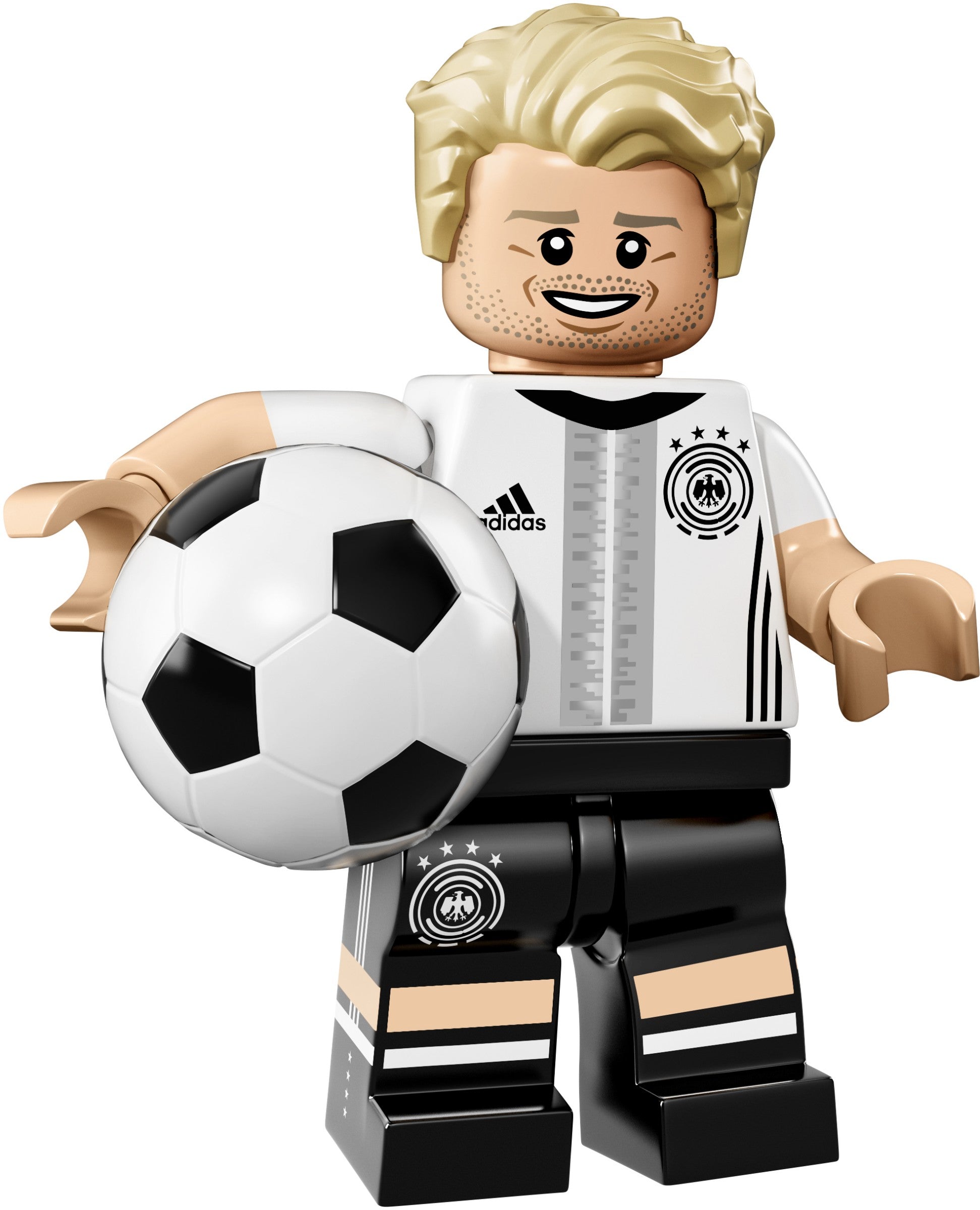 - Each minifigure in this series is dressed with the official adidas DFB soccer uniform bearing the player's name and number, plus a ball, display plate and collector's leaflet.