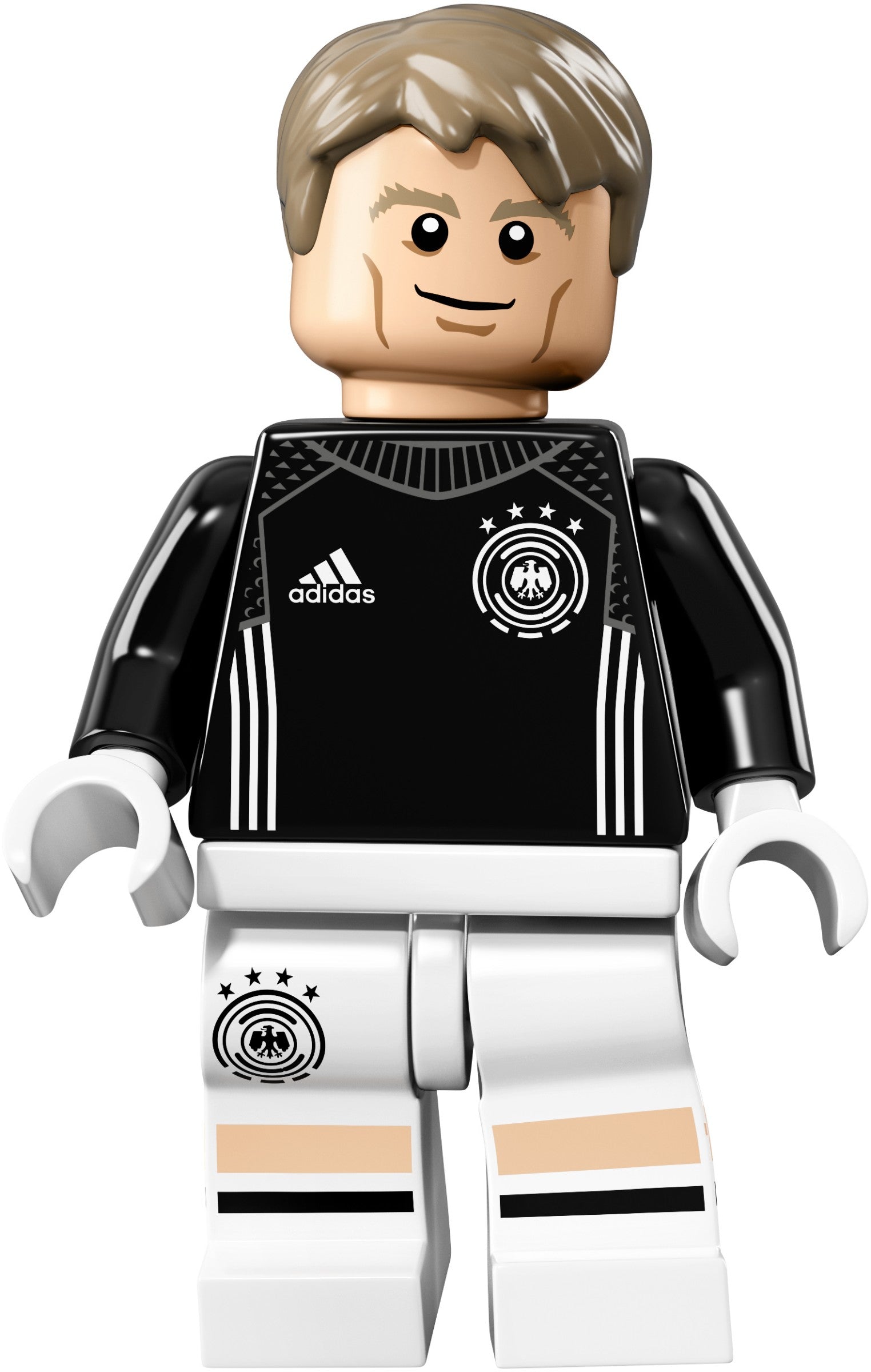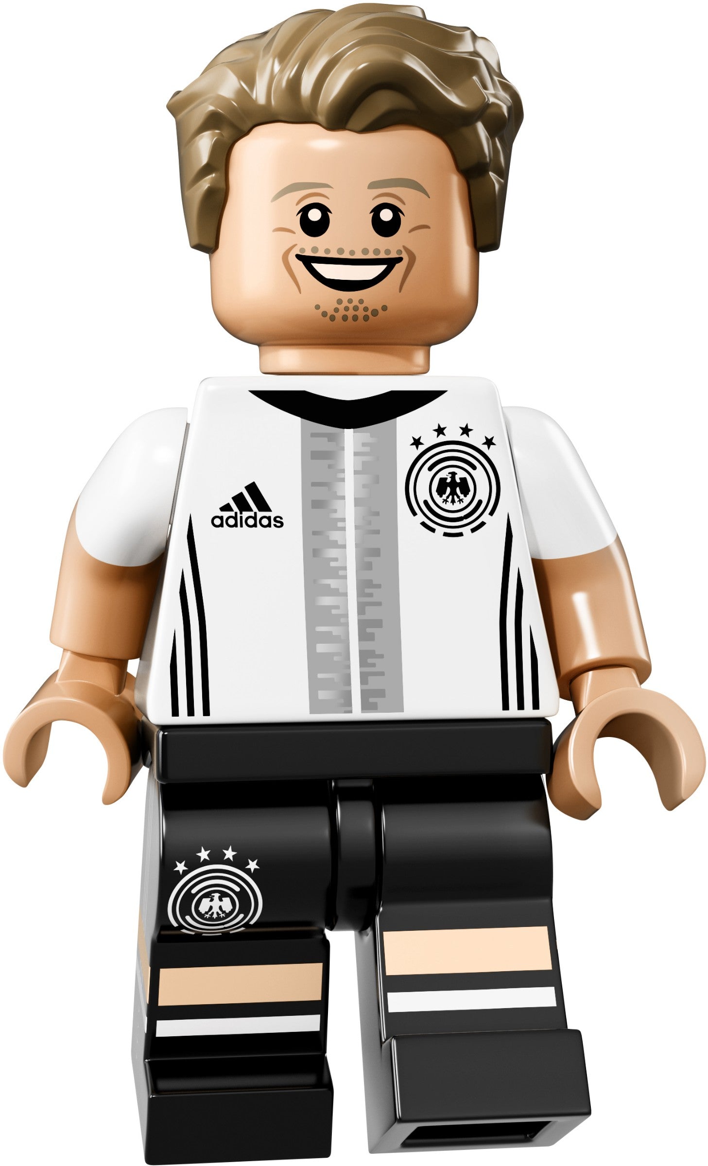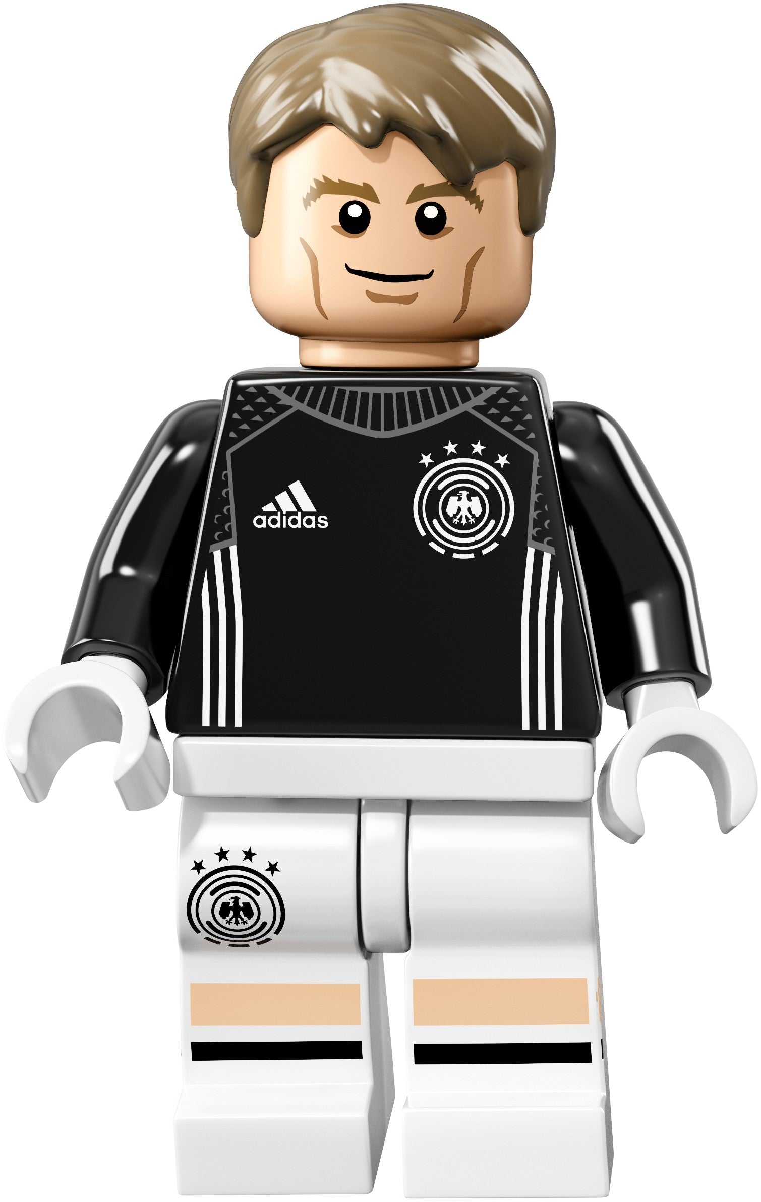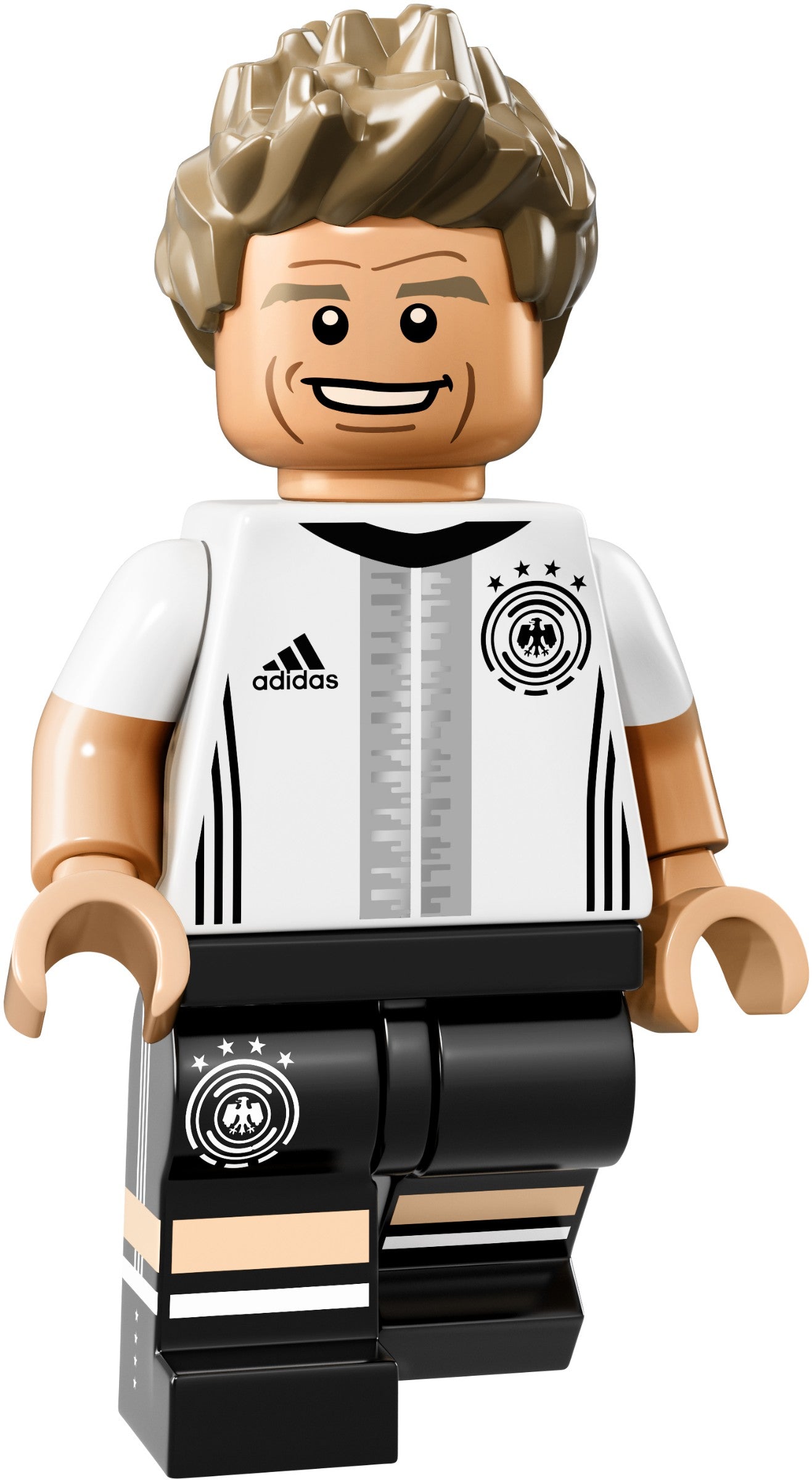 - Each minifigure in this series is dressed with the official adidas DFB soccer uniform bearing the player's name and number, plus a ball, display plate and collector's leaflet.