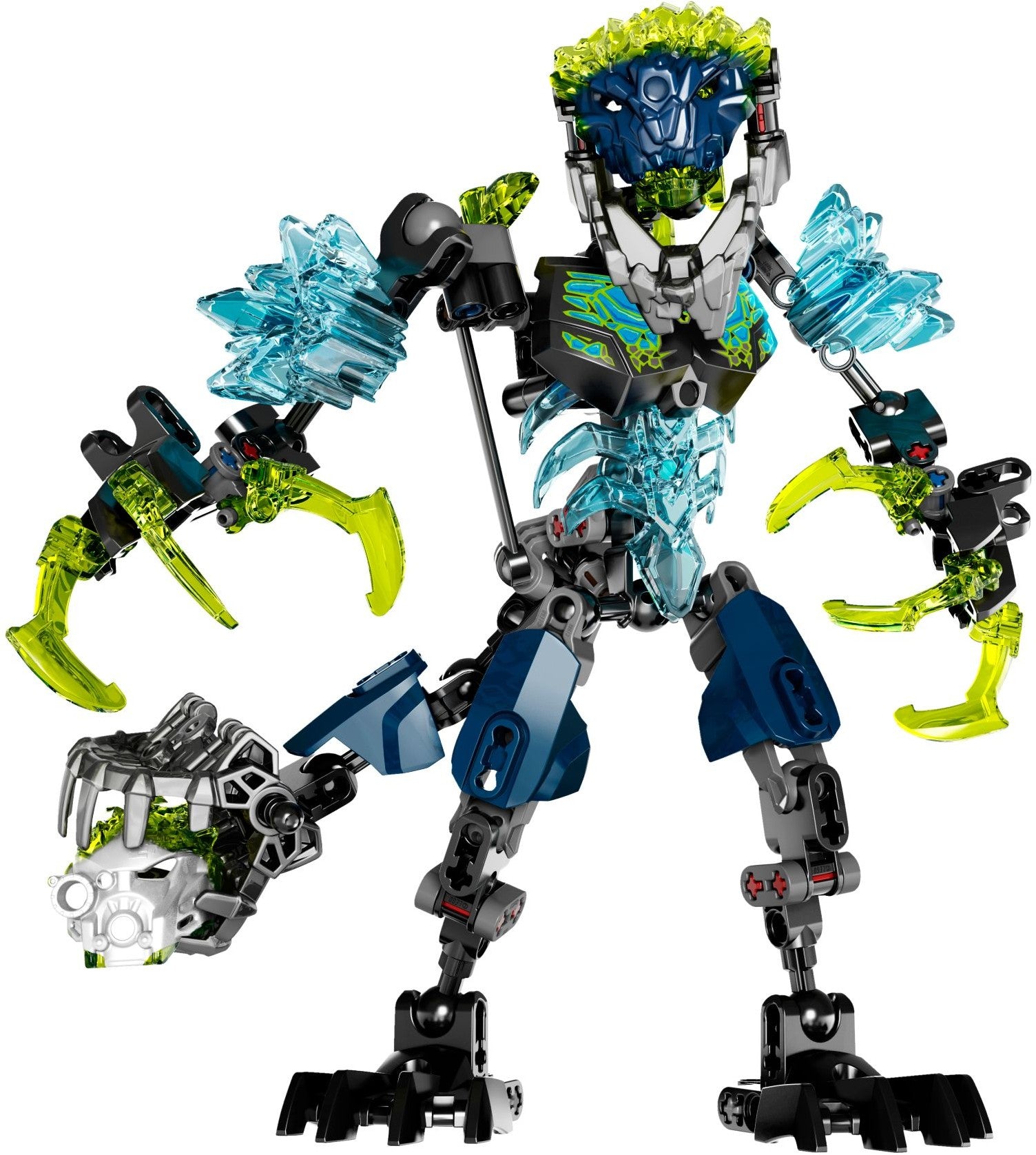 - Features a BIONICLE® head with mask pop-off trigger, Beast Mask of Corruption, punchable jaw mask pop-off function, armor chest piece with unique corruption decoration, posable joints, and interconnected claws and battle tail that move at the same time.