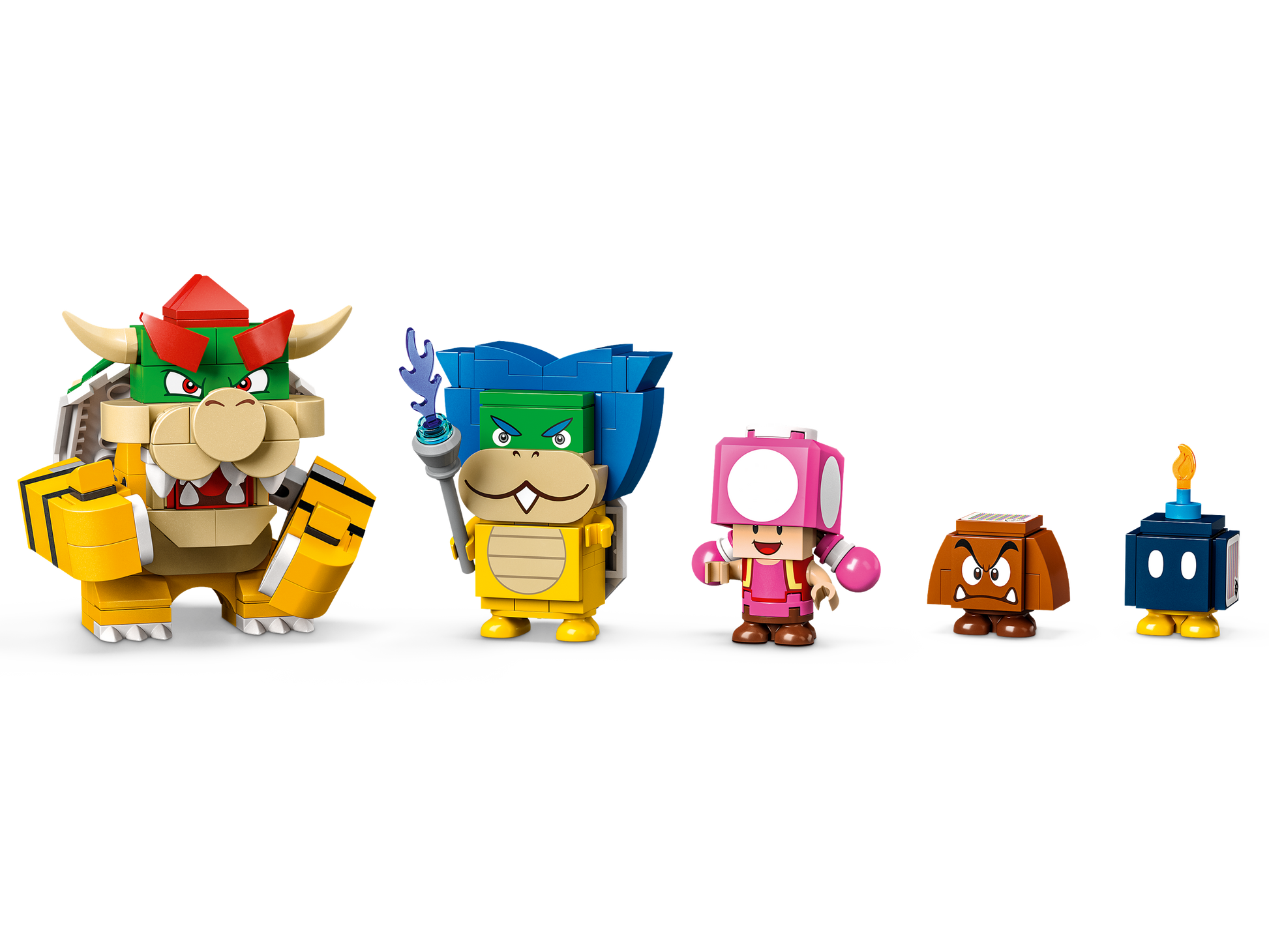 - 5 LEGO® Super Mario™ toy figures – Bowser, Ludwig, Toadette, a Goomba and a Bob-omb
