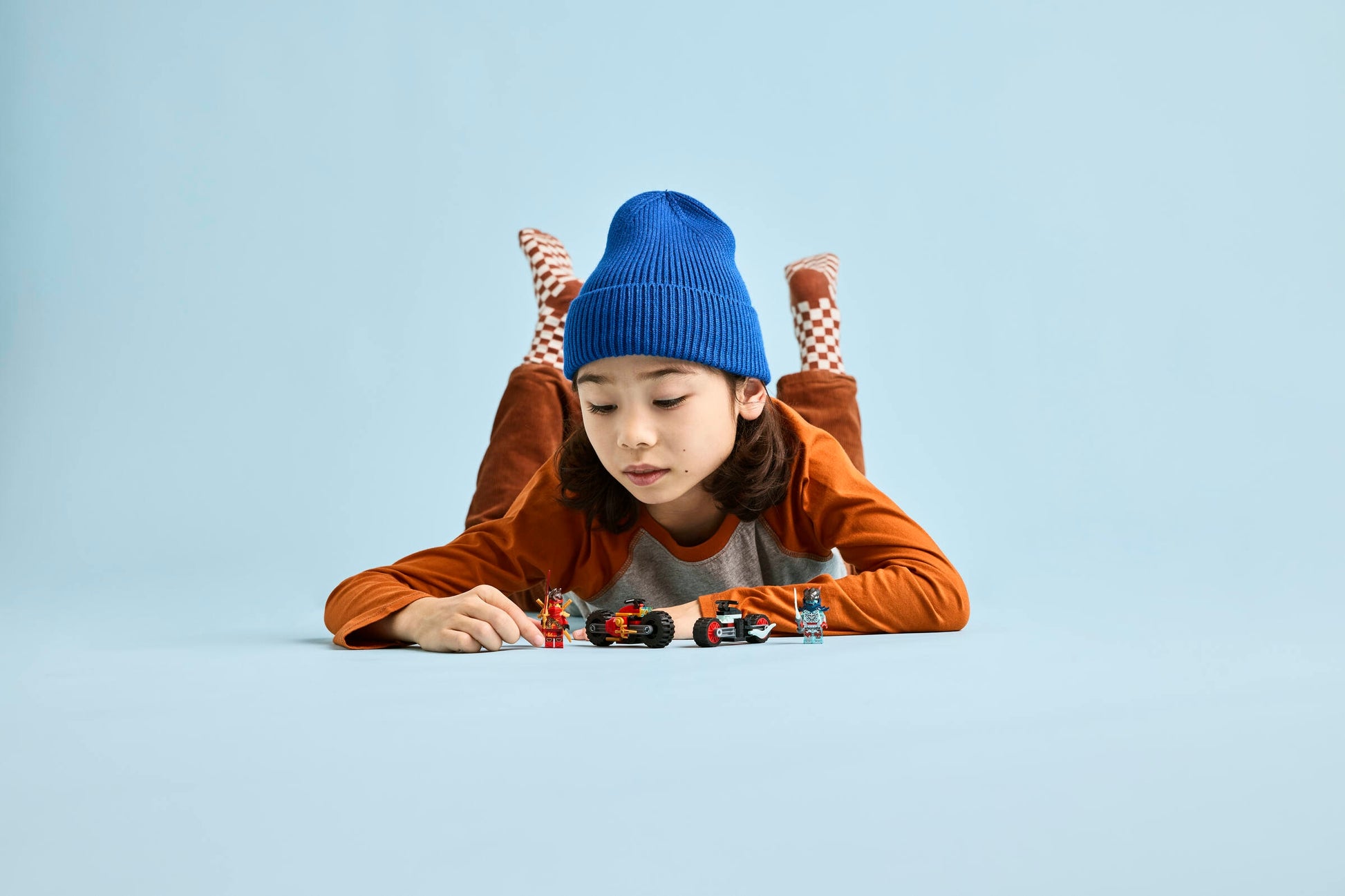 Kai’s Motorcycle Speed Race (71838) playset lets boys and girls aged 6 and up recreate fast-paced scenes from season 3 of the NINJAGO® Dragons Rising TV show. The action-packed motorcycle toy battle set features 2 ninja bike toys with moving wheels: Kai’s race bike adorned with 2 daggers, and the villainous Spectral Dragonian Scout’s demon bike.