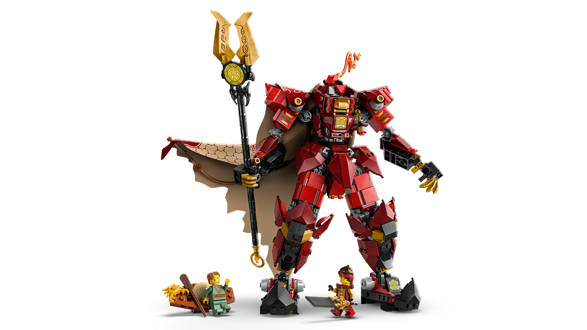 - 2 NINJAGO® minifigures – The model also includes ninja Kai with a blade, who can sit inside the mech’s chest, and a fisherman with a paddle in a boat to inspire extra storytelling