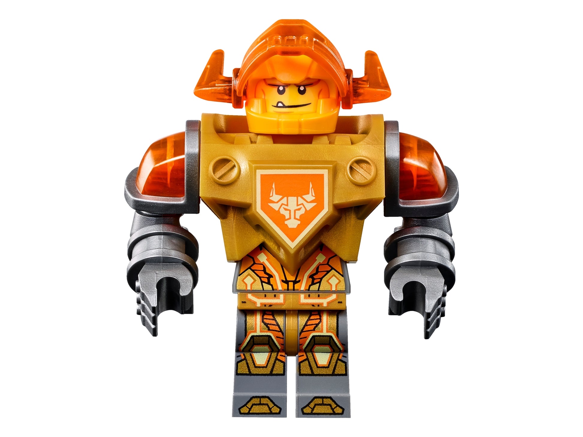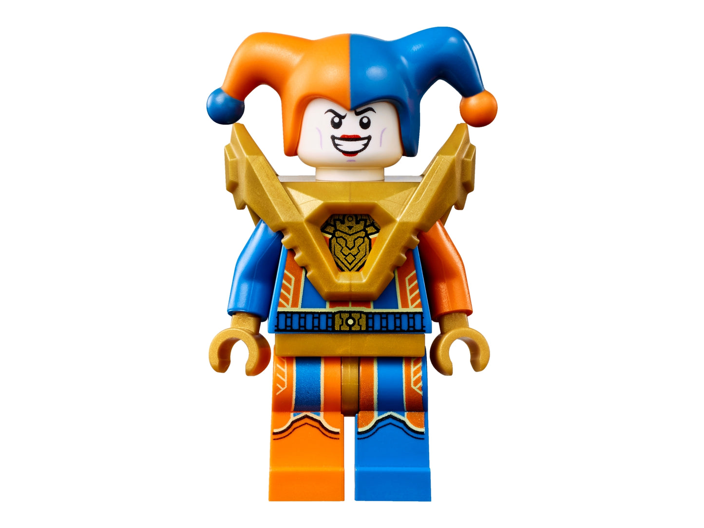 Get ready for a heavy-duty LEGO® NEXO KNIGHTS™ battle with Axl's Rolling Arsenal, featuring hidden flick missiles and opening drawbridge. Pitch the Jestroyer with its dual 6-stud rapid shooters against the Vyro Glyder. Lock up the critters in the Critter Trapper's storage chest and save Knighton from the tech infection. This popular kids toy includes 4 minifigures and 3 scannable shields.