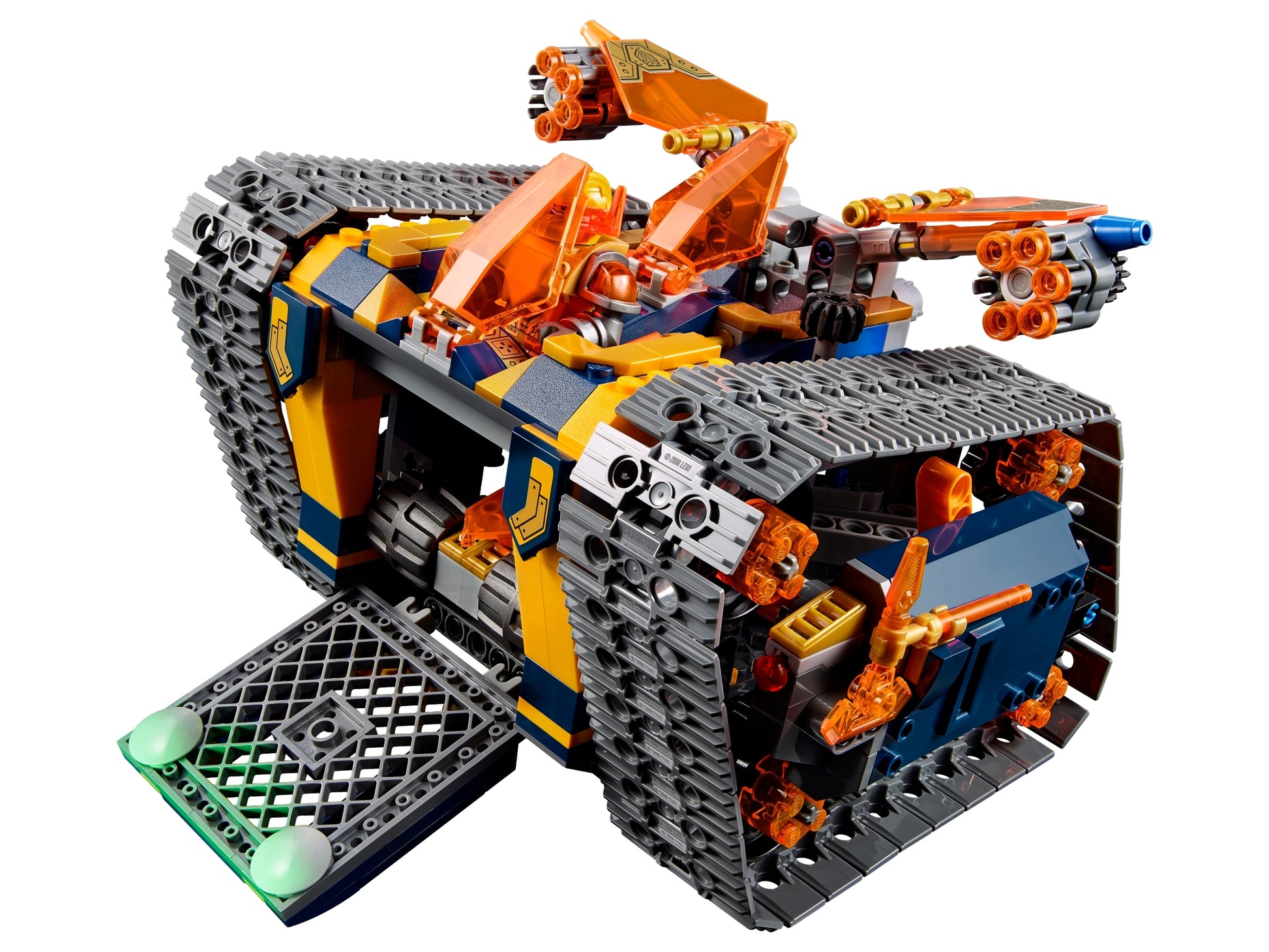 - Axl's Rolling Arsenal features a lowering drawbridge, minifigure cockpit, 2 flick missiles and a shield holder, plus the Critter Trapper mini-tank with a storage chest and shield holder.