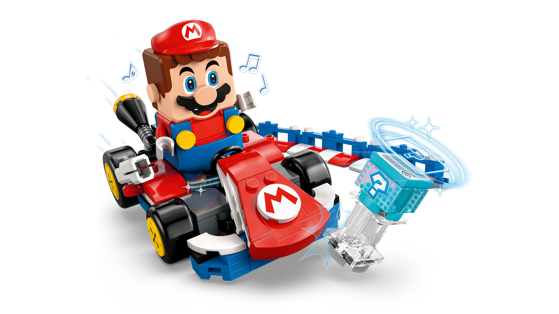 - Interactive toy – Race the Standard Kart with LEGO® Mario™, earn digital rewards from the Item Box, defeat the Bob-omb and Thwomp, see how LEGO Mario reacts to the green and red LEGO plates, and more