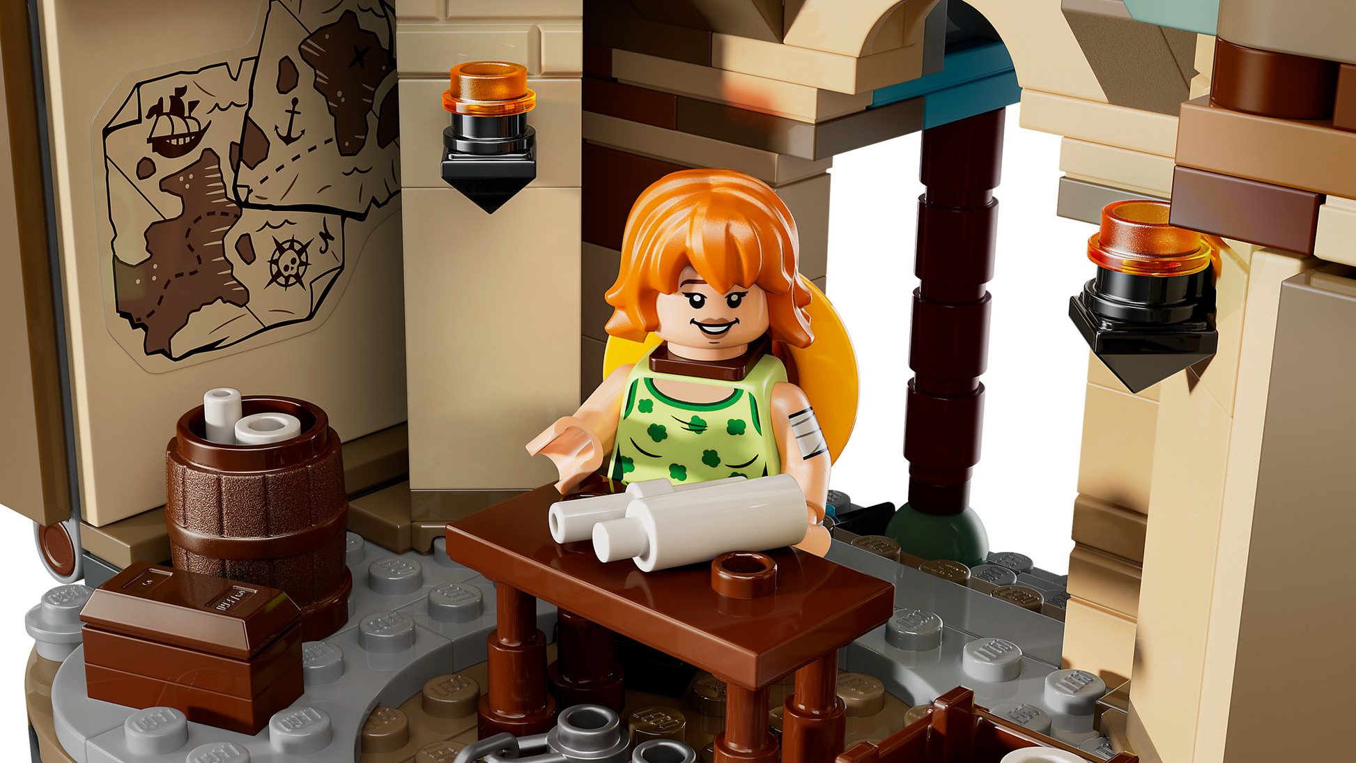 - LEGO® anime minifigures – The set comes with minifigures of Luffy, who comes with arm-lengthening elements, Nami, Usopp, Arlong and Chu