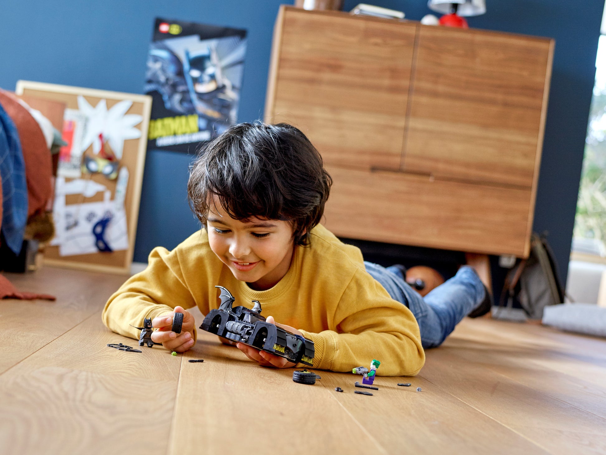 Kids will love pretending to be Batman™ and The Joker™ with LEGO® DC Batman 76119 Batmobile™: Pursuit of The Joker. This classic Batmobile toy car model has lots of eye-catching features to delight young super heroes, including a detailed dashboard in the opening minifigure cockpit, Bat symbol decoration on the wheel trims and a flame exhaust element that automatically rotates when the car is pushed along. The Batmobile's hidden, foldout stud shooters are also great for battles against The Joker, who is also equipped with a stud shooter. This LEGO Batman toy playset includes 2 minifigures and children can customize their builds, minifigures and weapons with the included pack of 10 assorted Bat elements. Give any LEGO builder an amazing building experience with Instructions PLUS, available in the LEGO Life app for smartphones and tablets. The easy-to-use, intuitive building instructions let them zoom, rotate and visualize their creation using the special ghost mode as they go. Instructions PLUS is also great for younger builders, guiding them through the building process for a greater sense of independence and achievement.