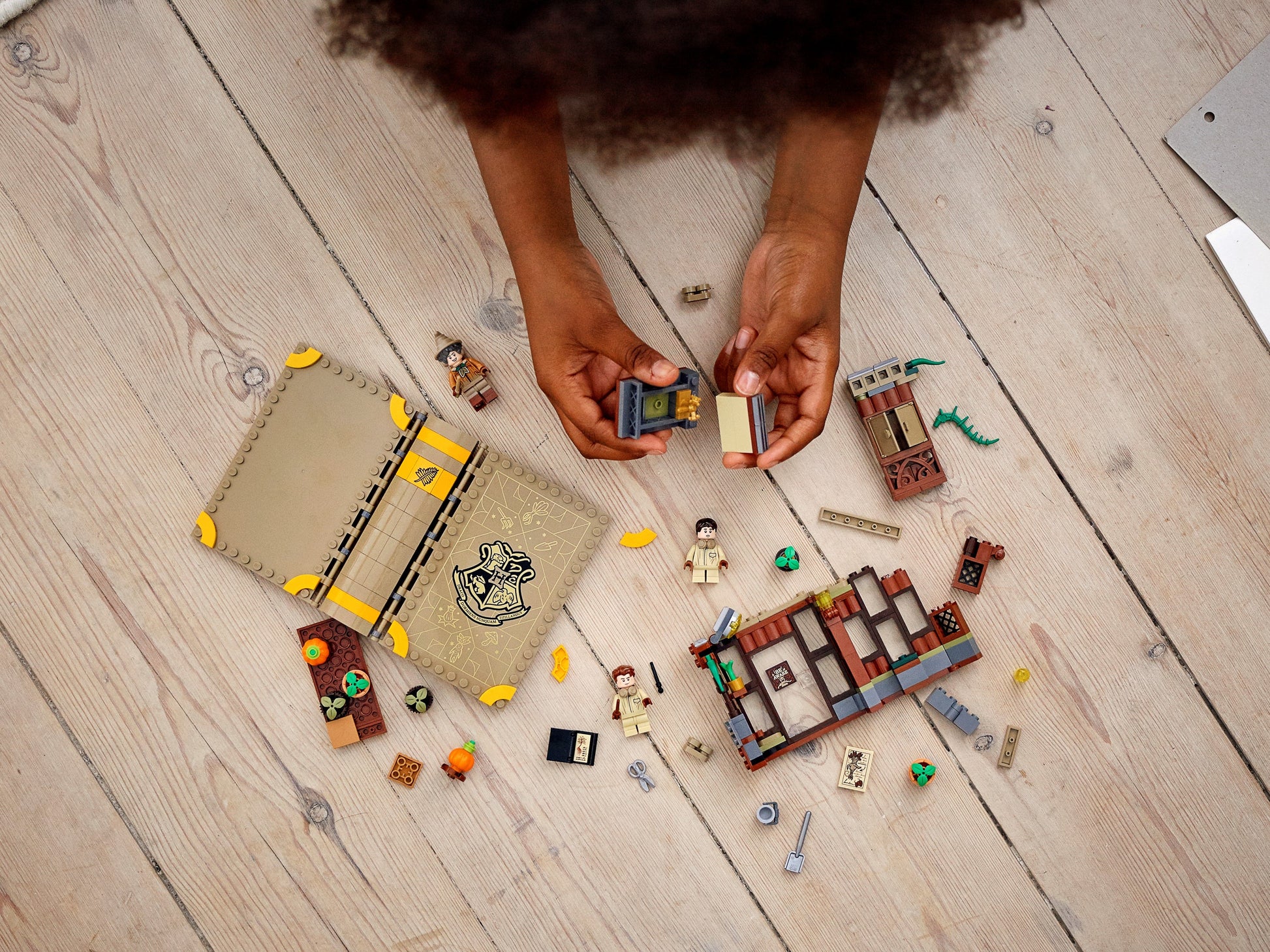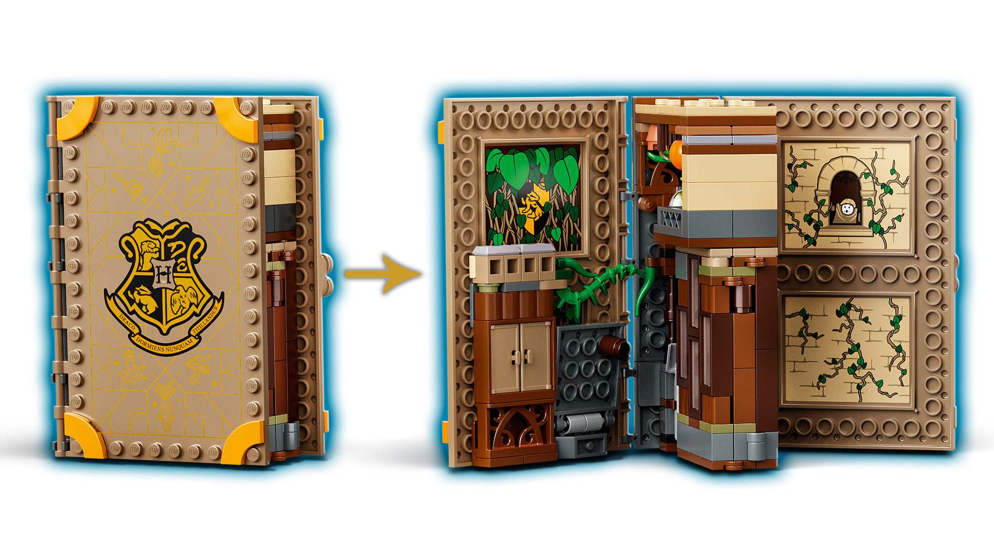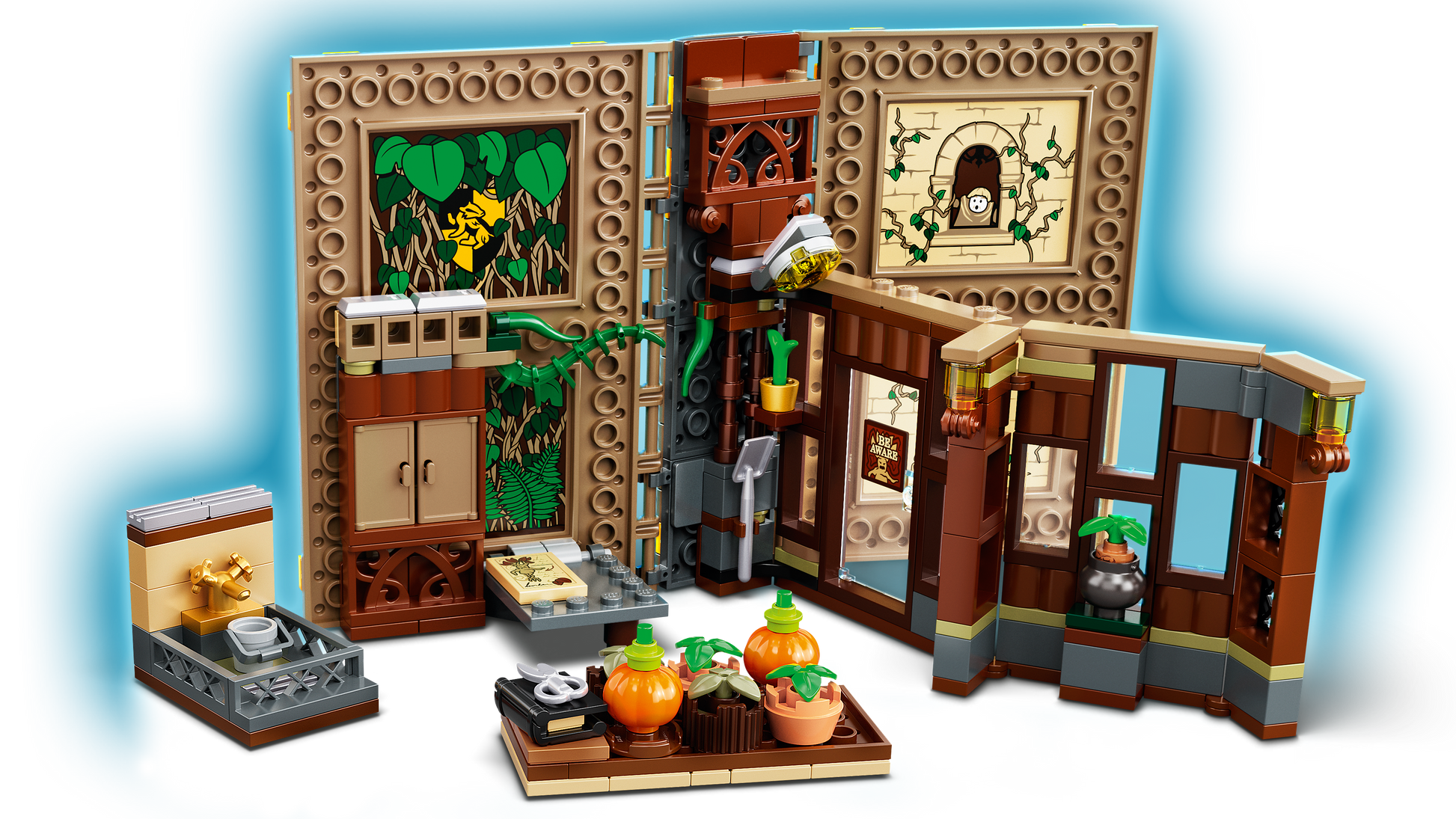 - LEGO® Harry Potter™ Hogwarts™ Moment: Herbology Class (76384) is a brick-built playbook that opens and unfolds to reveal the Hogwarts greenhouse, where a Herbology lesson is taking place.