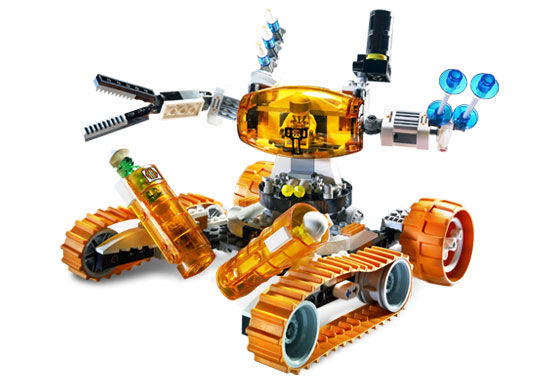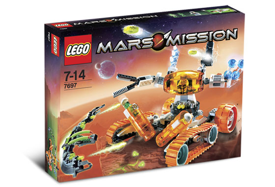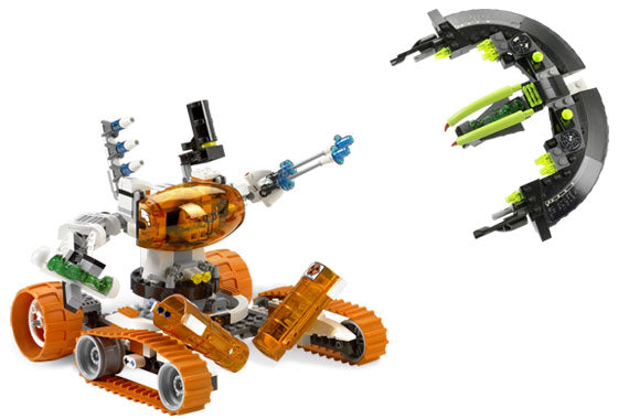 With its disc shooter, storage tanks, and a powerful claw for capturing crystals and alien attackers, the hi-tech MT-51 Claw-Tank is ready to defend the Mars Mission team against the alien strike ship. Includes futuristic mining tank, alien strike ship, astronaut minifigure and 2 glow-in-the-dark alien minifigures! Features working treads, rolling wheels and poseable arms to vanquish any foe! Load and launch the disk shooter! MT-51 Claw-Tank turns 360 degrees to capture any alien!