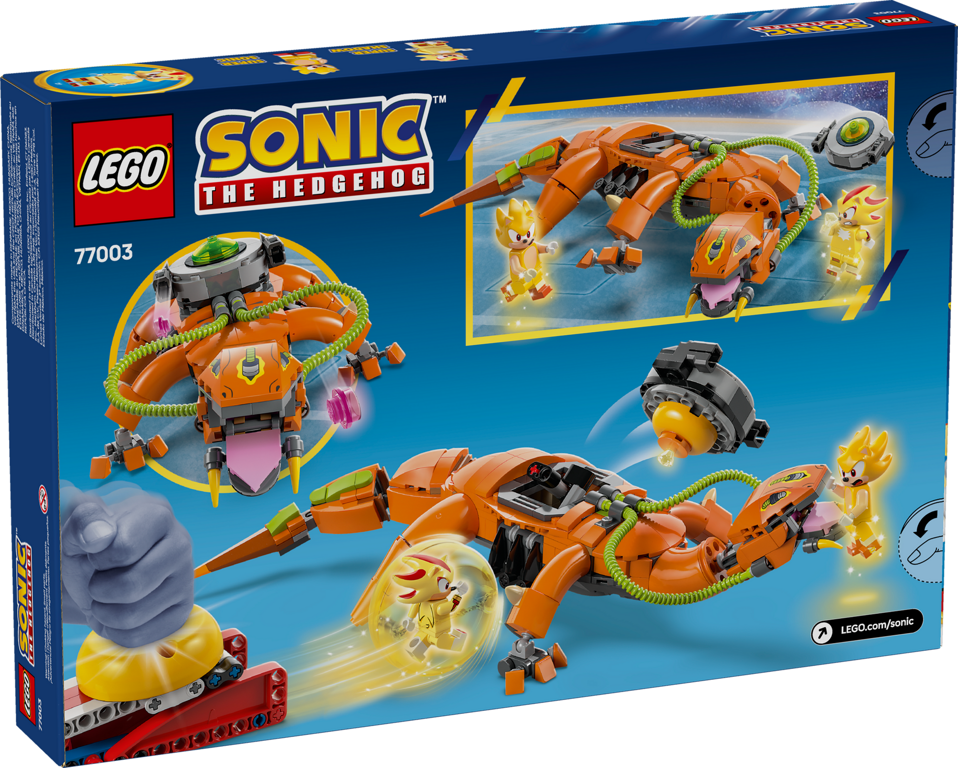 Inspire action-packed storytelling adventures with a video game toy for kids and fans aged 9 and up with the Super Shadow vs. Biolizard (77003) building set. This collectible LEGO® Sonic the Hedgehog™ toy features a brick built Biolizard figure with energy pod, a speed sphere launcher and speed sphere, and accessories including a Chaos Emerald. This fun gamer gift also features 2 other characters: Super Shadow and Super Sonic minifigures.This Sonic toy is an interactive playset that encourages fans to create new role-play stories with Super Shadow, Super Sonic and the Biolizard, defending the Space Colony ARK from the Biolizard or recovering the Chaos Emerald from the energy pod.Creative, fast-action fun can be extended with other LEGOSonic the Hedgehog toys in the range (sets sold separately). Kids also get to experience an intuitive building adventure with the LEGO Builder app, where they can zoom in and rotate their models, save sets and track their progress.