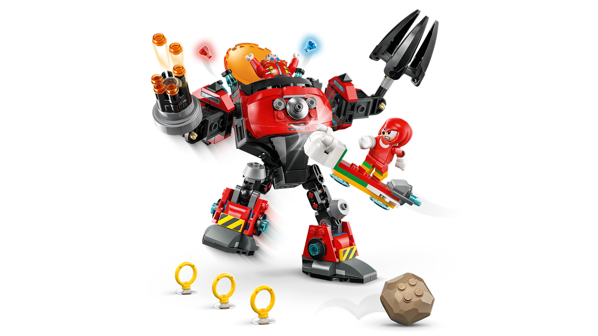 - LEGO® mech adventures – This fighting toy also includes a catapult with terrain that launches boulders with a lever push, letting Sonic fans play out endless action with Knuckles and Dr. Eggman