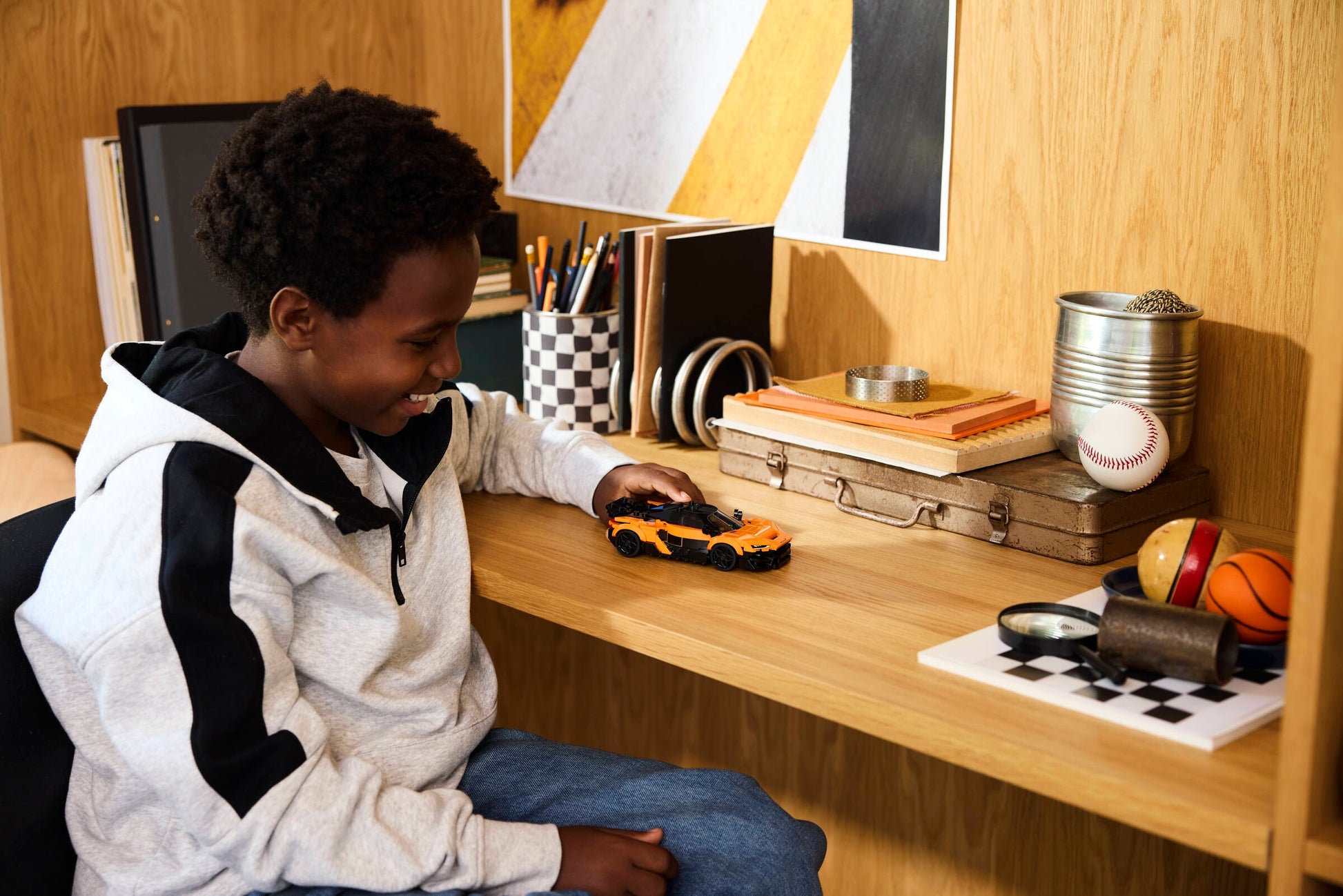 - AUTHENTIC DETAILS – Includes design details from the real supercar, including an adjustable rear wing for cruising or racing, a rear engine, a cockpit and an interior infotainment screen
