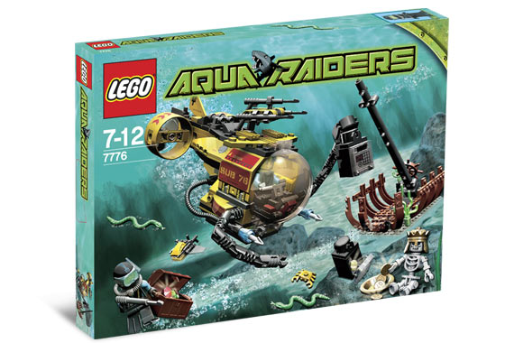 Deep below the waves, the Aqua Raiders have discovered a long-lost shipwreck with an ancient king's fortune in gold and jewels. Help the deep-sea divers use their high-tech sub's robotic arms and working magnetic collector to pick up the sunken treasure, but watch out for the poisonous sea snakes and the ship's falling mast! Includes 2 diver minifigures and 1 skeleton! Open the hatch to seat a diver at the controls! Use the sub's magnetic arm to pick up the treasure!