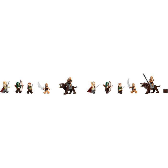 - Includes 6 minifigures with assorted weapons and accessories: Thranduil, Mirkwood™ Elf, 2 Mirkwood Elf Archers and 2 Gundabad Orcs